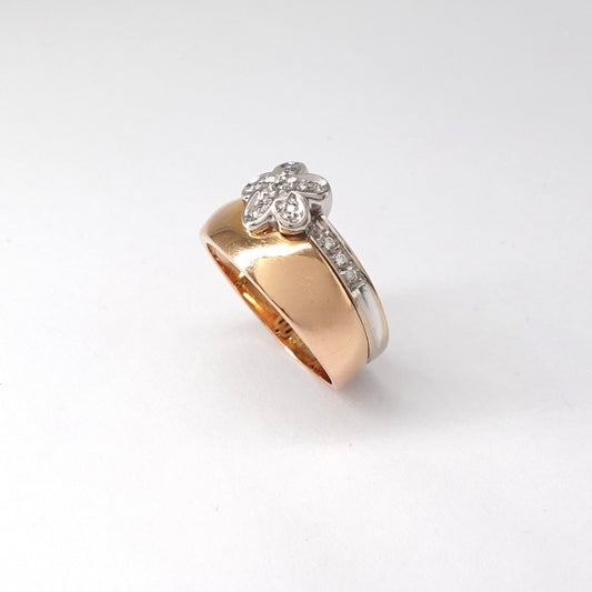 Anello a fascia bombata con fiore di diamanti