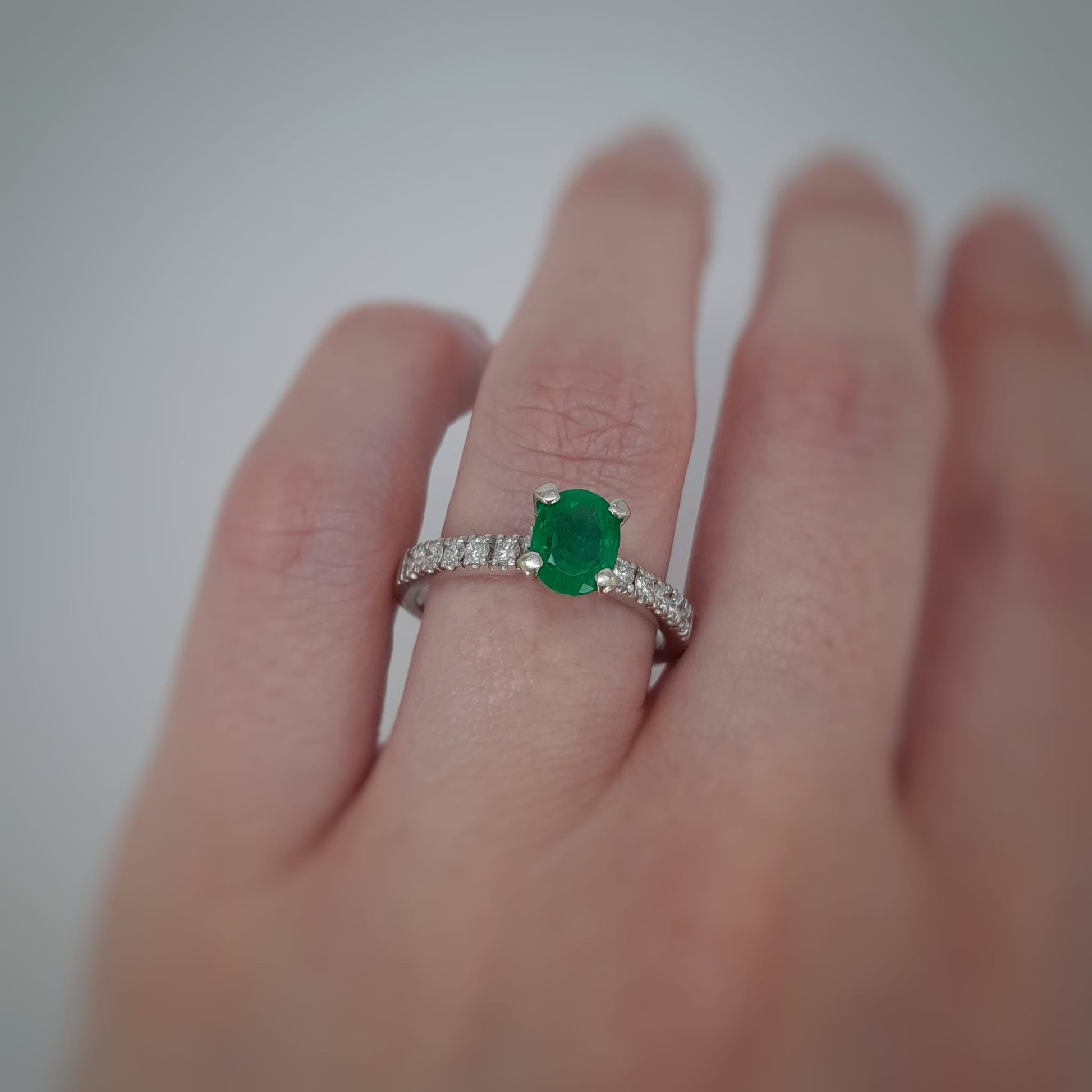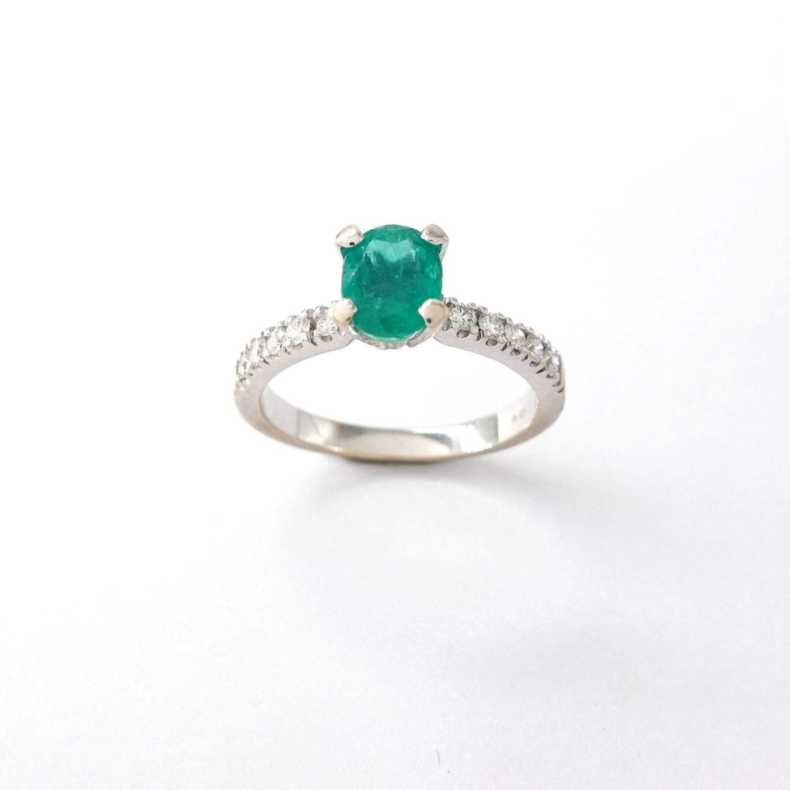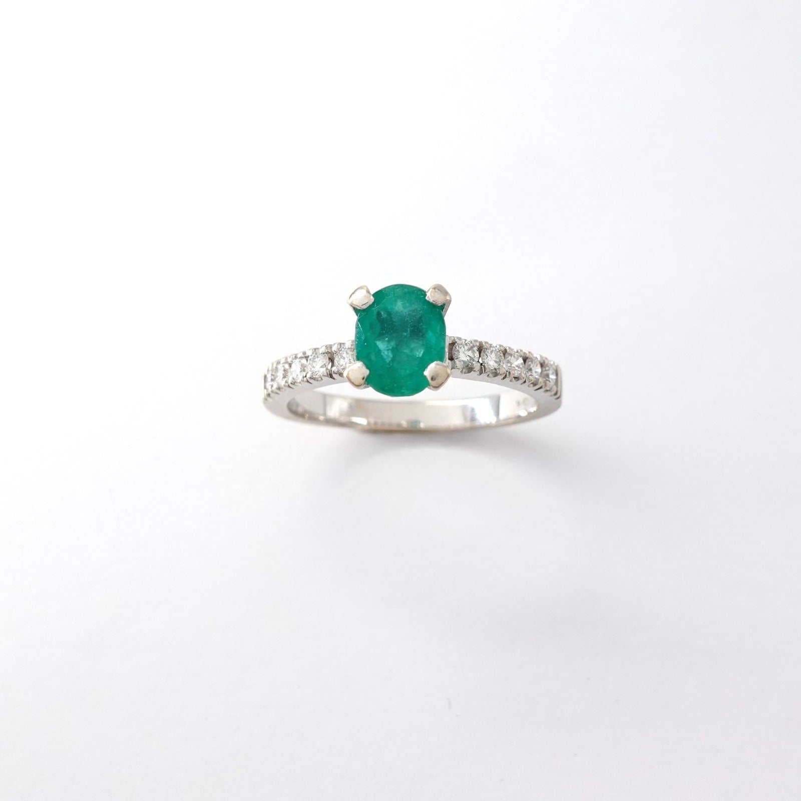 Anello in oro bianco 18kt con smeraldo e diamanti taglio brillante Peso: 4gr Misura: 16,5 Cod.2344M