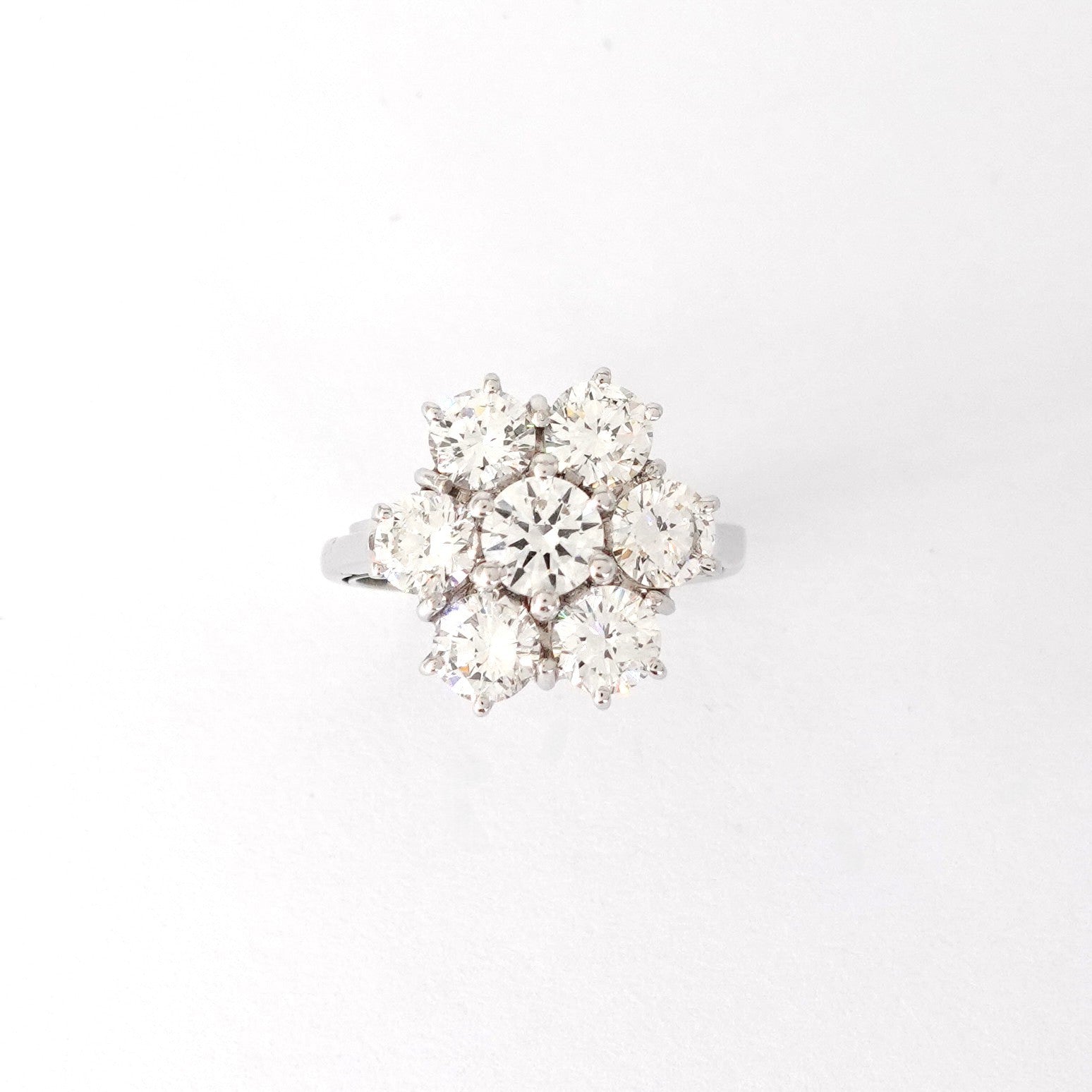 Anello fiore in oro bianco 18kt con diamanti taglio brillante (1,85ct)