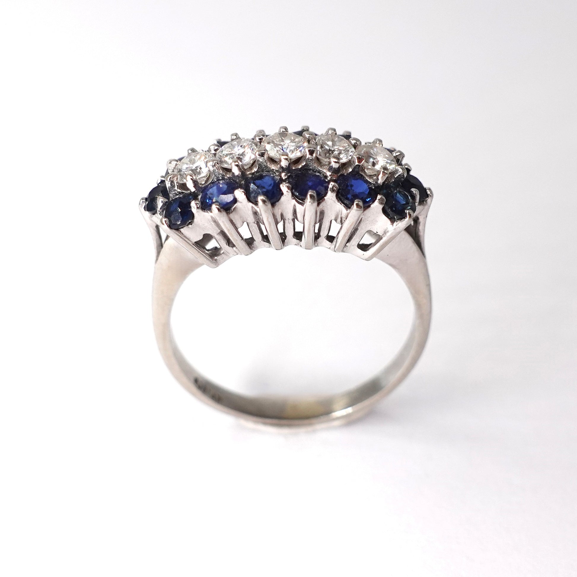 Anello in oro bianco 18kt con zaffiri e diamanti taglio brillante.