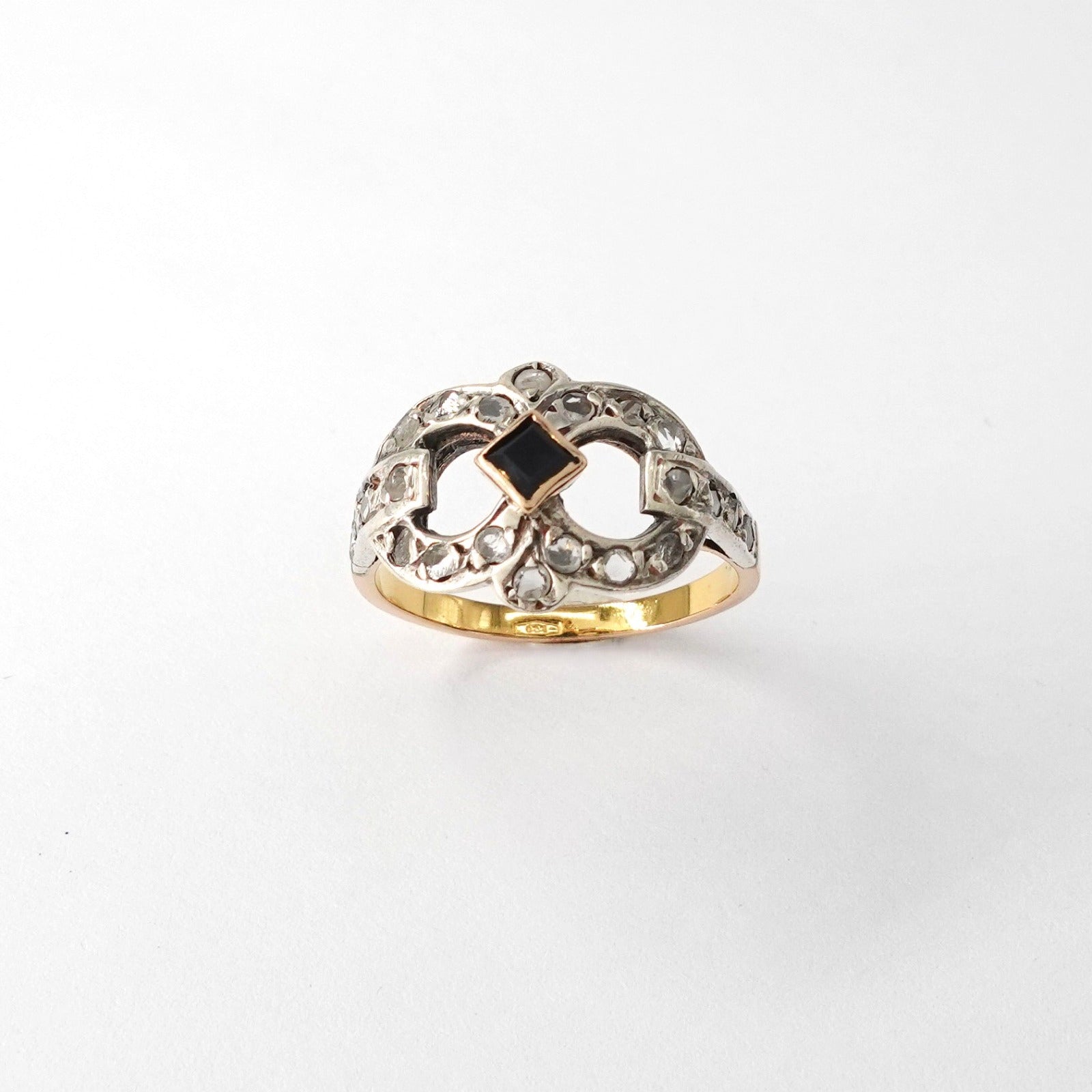 Anello vintage in oro giallo 9kt e argento925 con diamanti taglio antico Peso: 3,41gr Misura: 16
