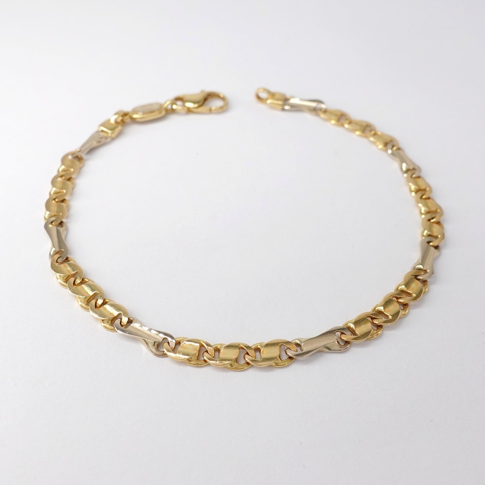 Bracciale in oro giallo e bianco 18kt a maglia piatta