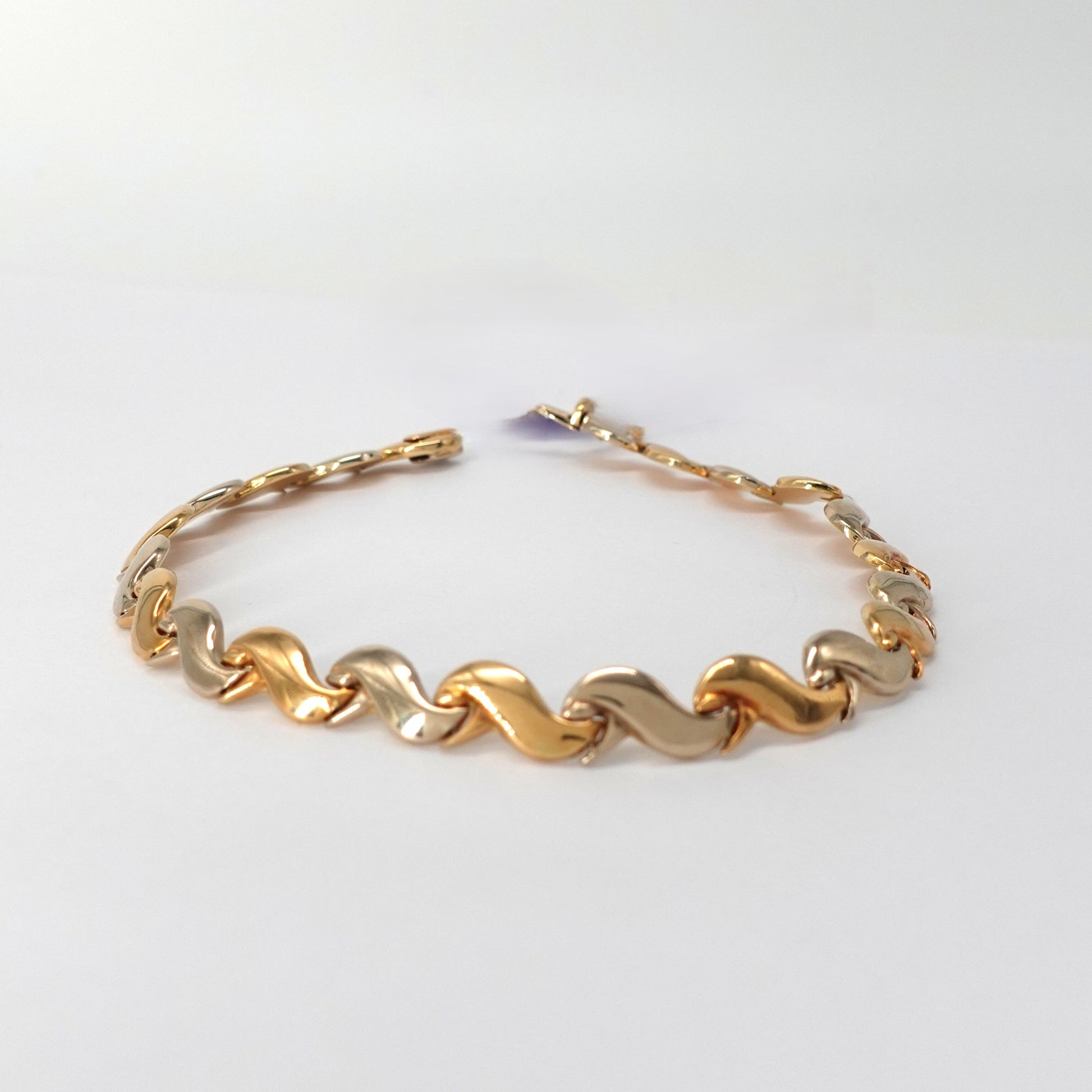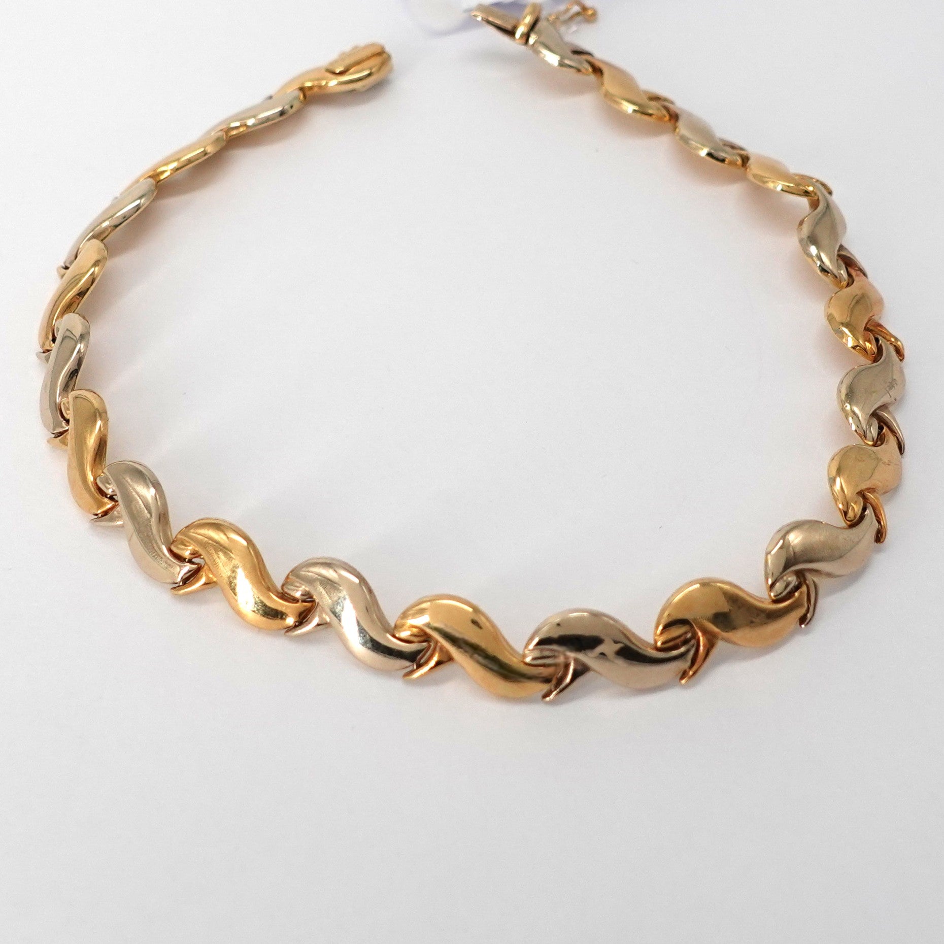 Bracciale in oro giallo e bianco 18kt, a onde.