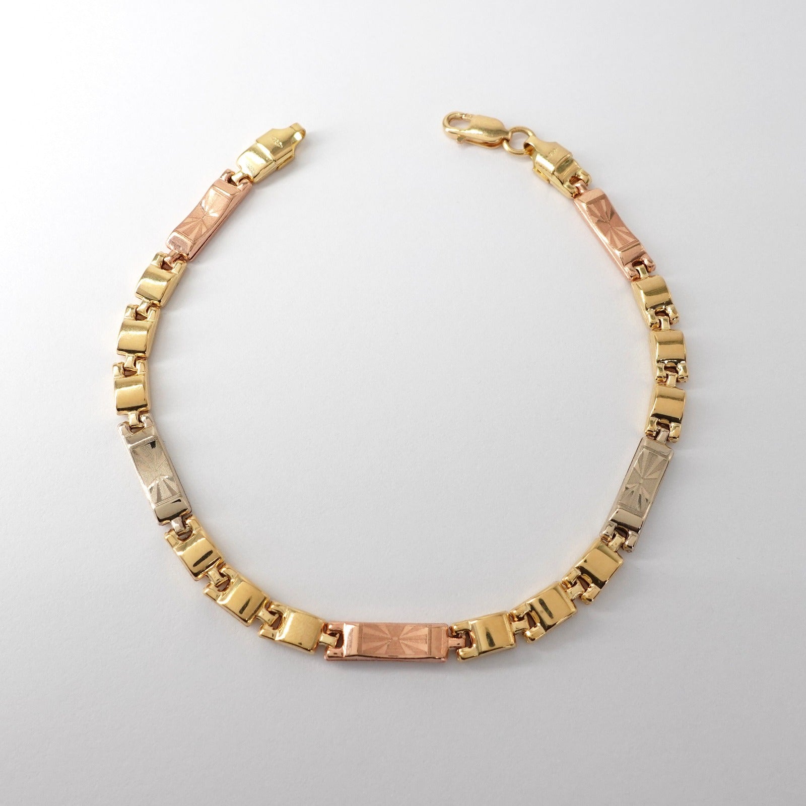 Bracciale a segmenti in oro giallo, bianco e rosè 18kt