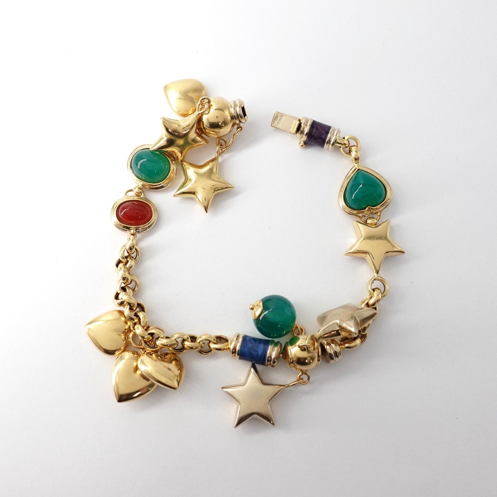 Bracciale in oro giallo 18kt con charms e gemme Peso: 31,83gr Lunghezza: 19cm Cod.2589B