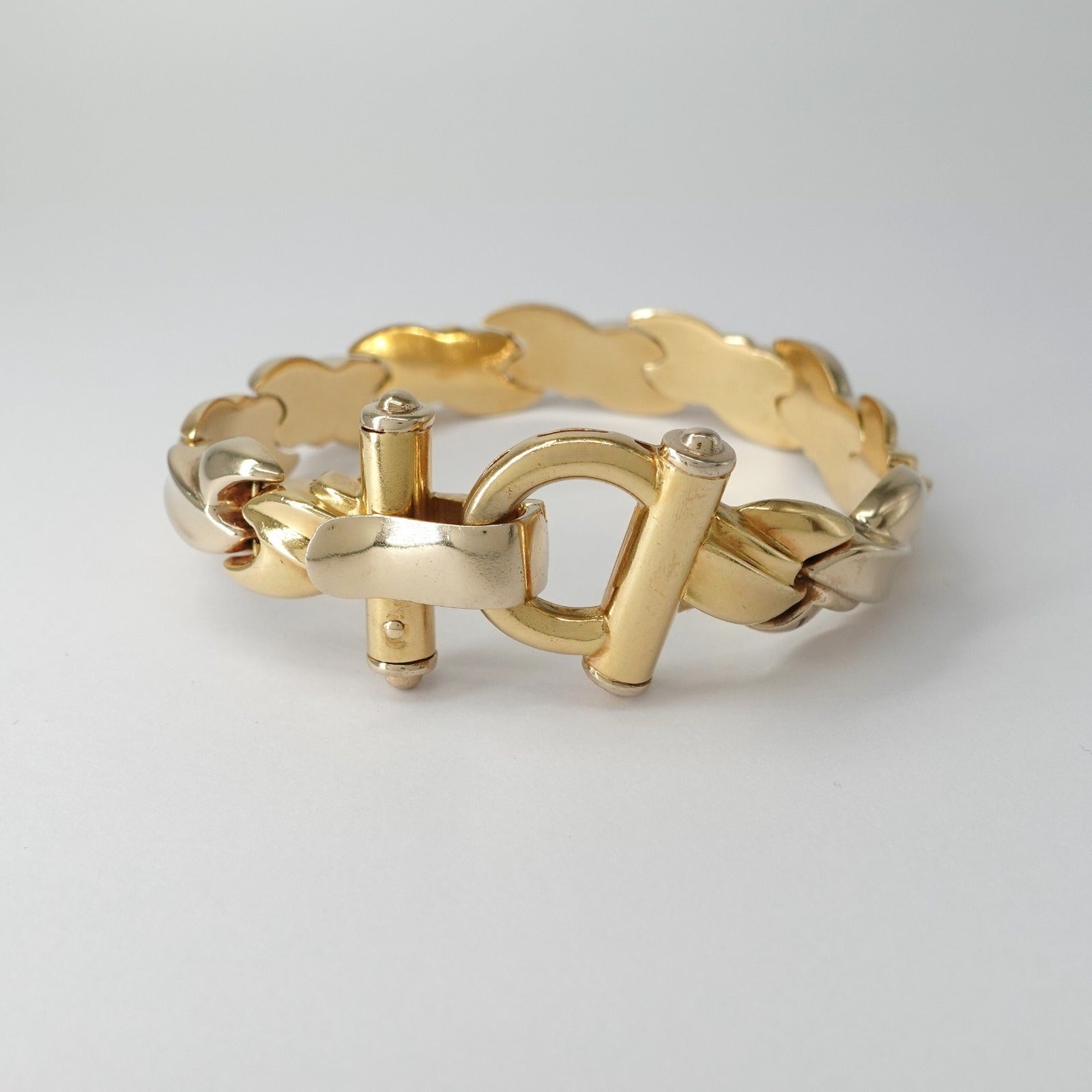 Bracciale in oro giallo e bianco 18kt con chiusura a fibbia