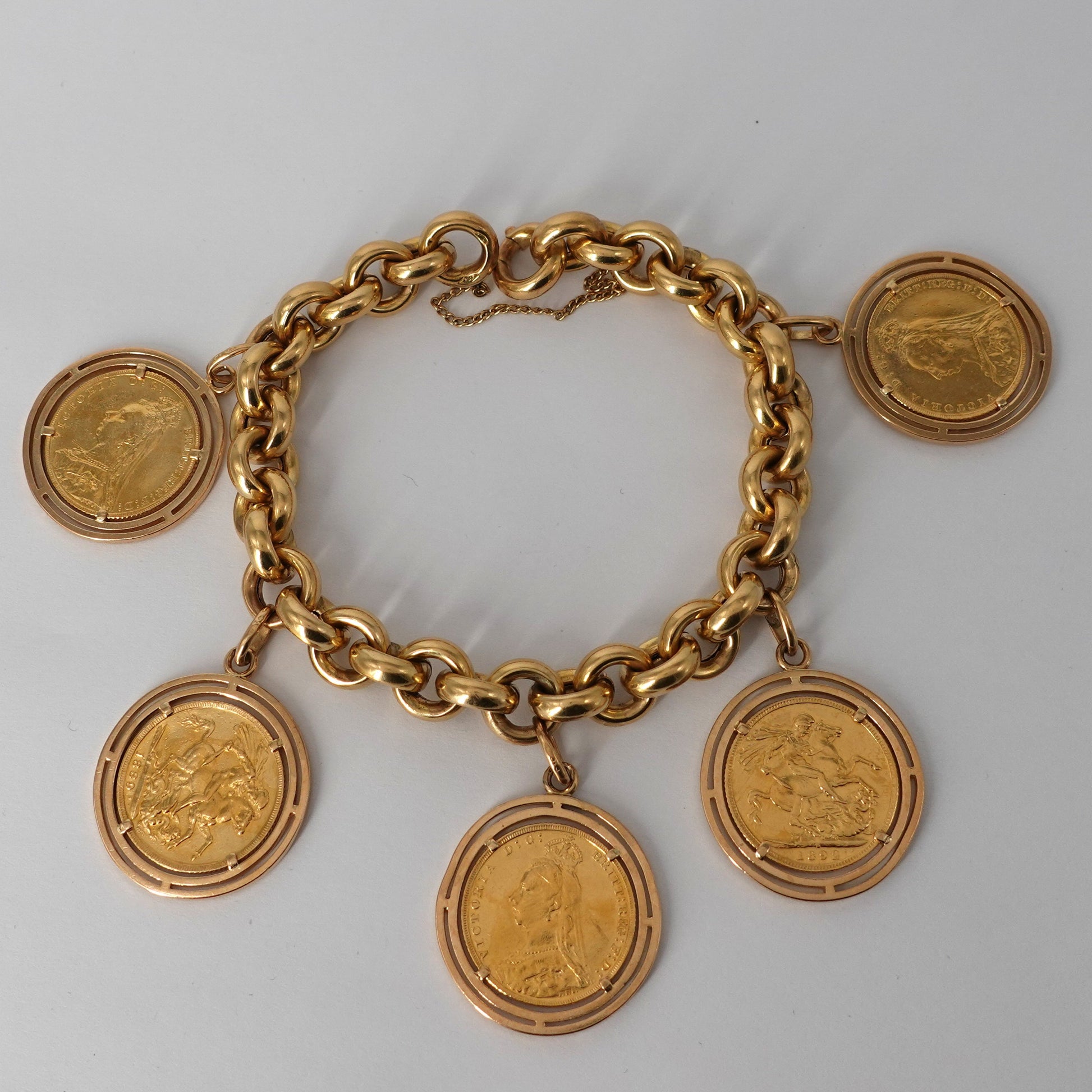 Bracciale ad anelli in oro giallo 18kt con charms Elisabeth in oro giallo 22kt.