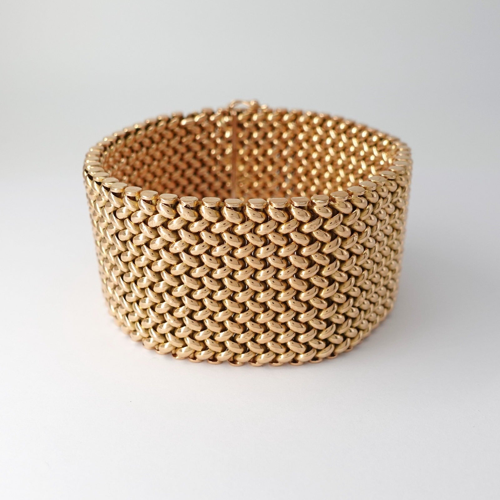 Bracciale Vintage in oro giallo 18kt a fascia alta intrecciata