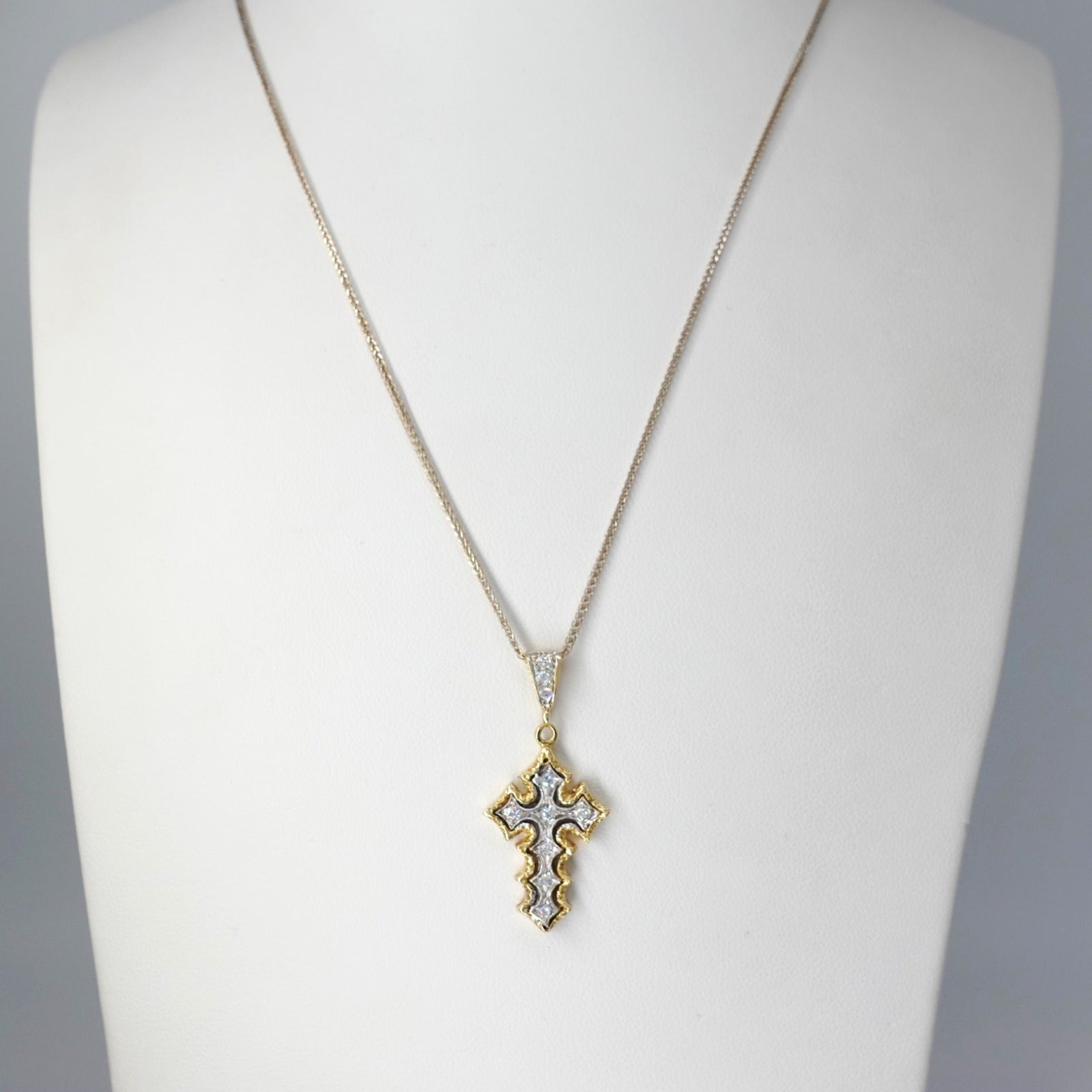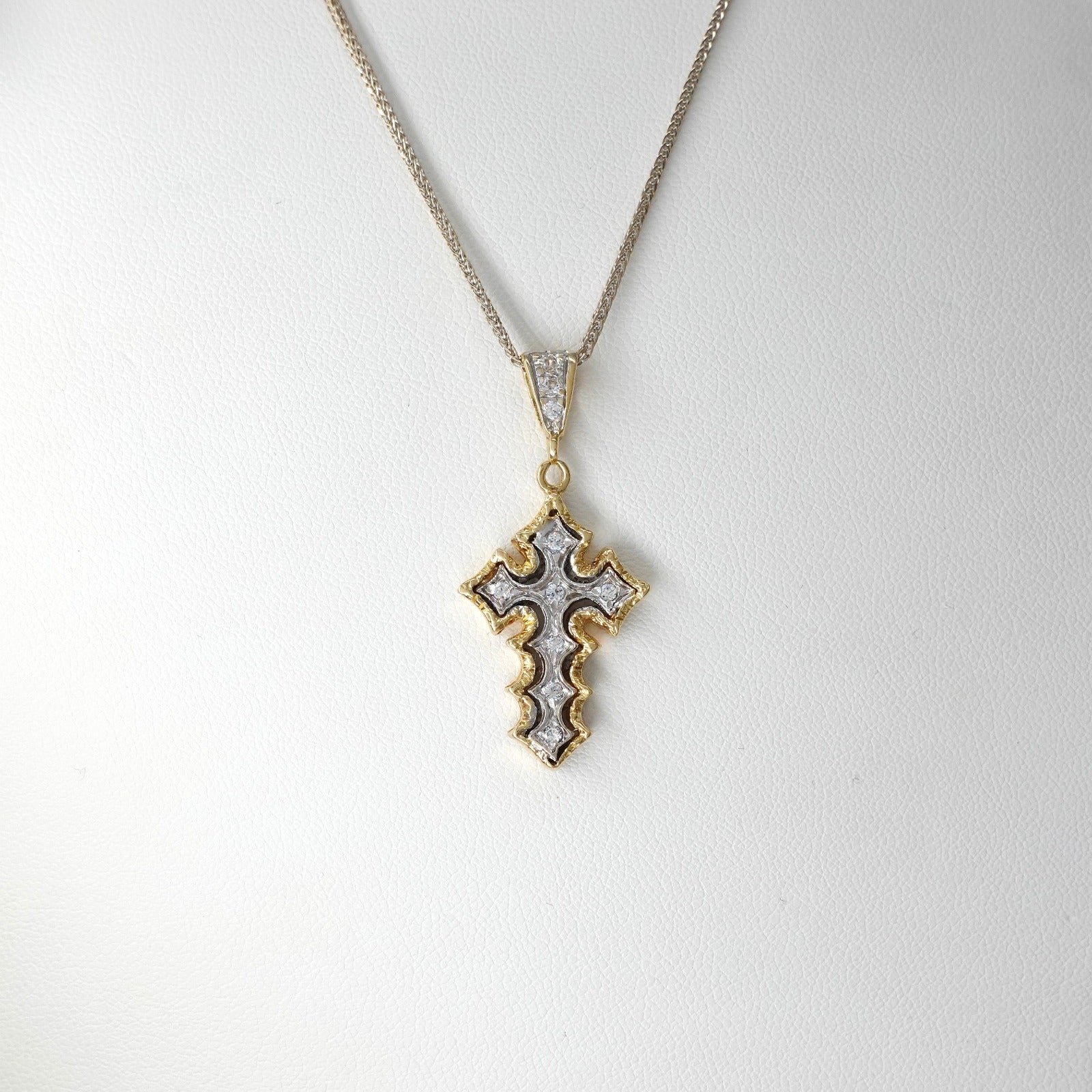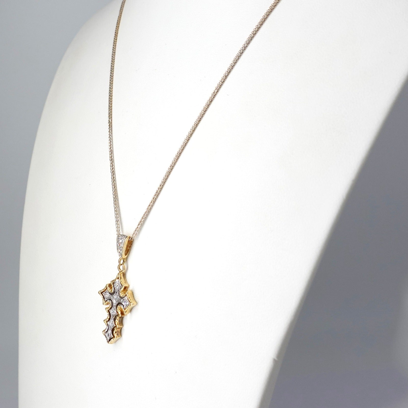 Catenina con pendente croce in oro giallo e bianco 18kt e zirconi