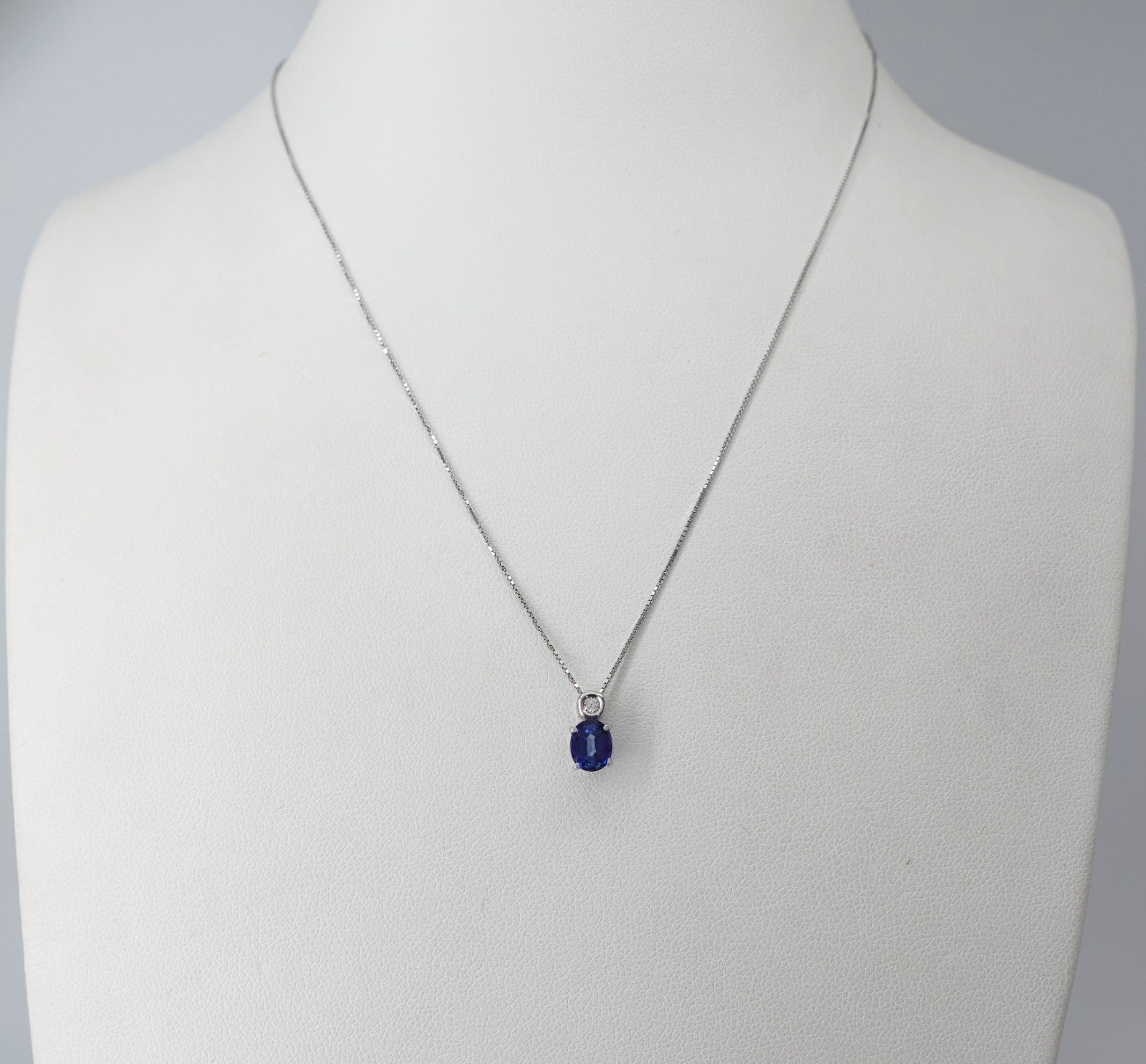 Catenina in oro bianco 18kt con pendente zaffiro e diamante taglio brillante