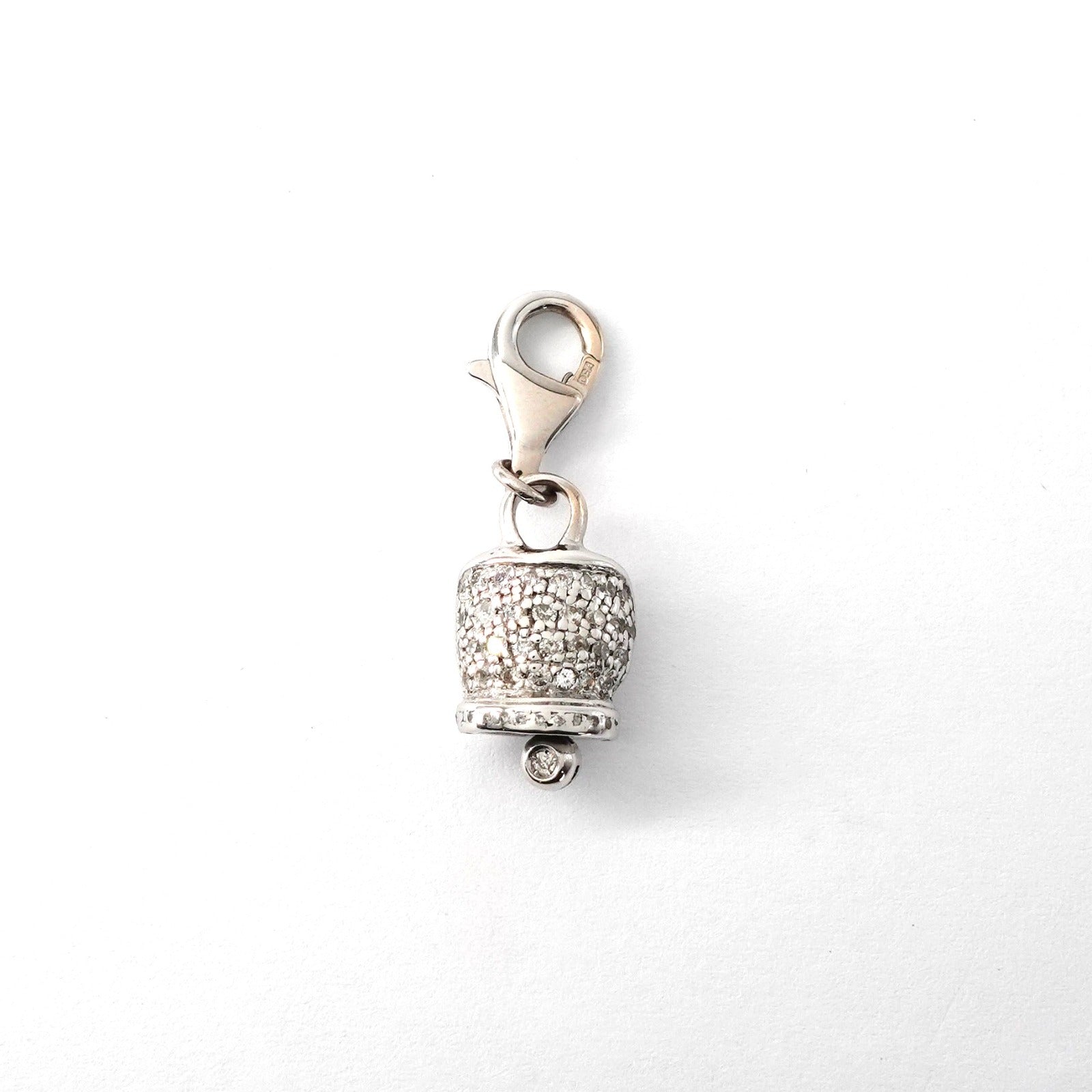 Ciondolo campanella in oro bianco 18kt con pavè di diamanti taglio brillante