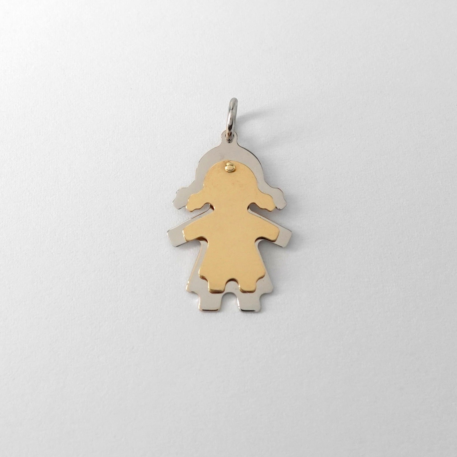 Ciondolo mamma e bimba in oro giallo e bianco 18kt