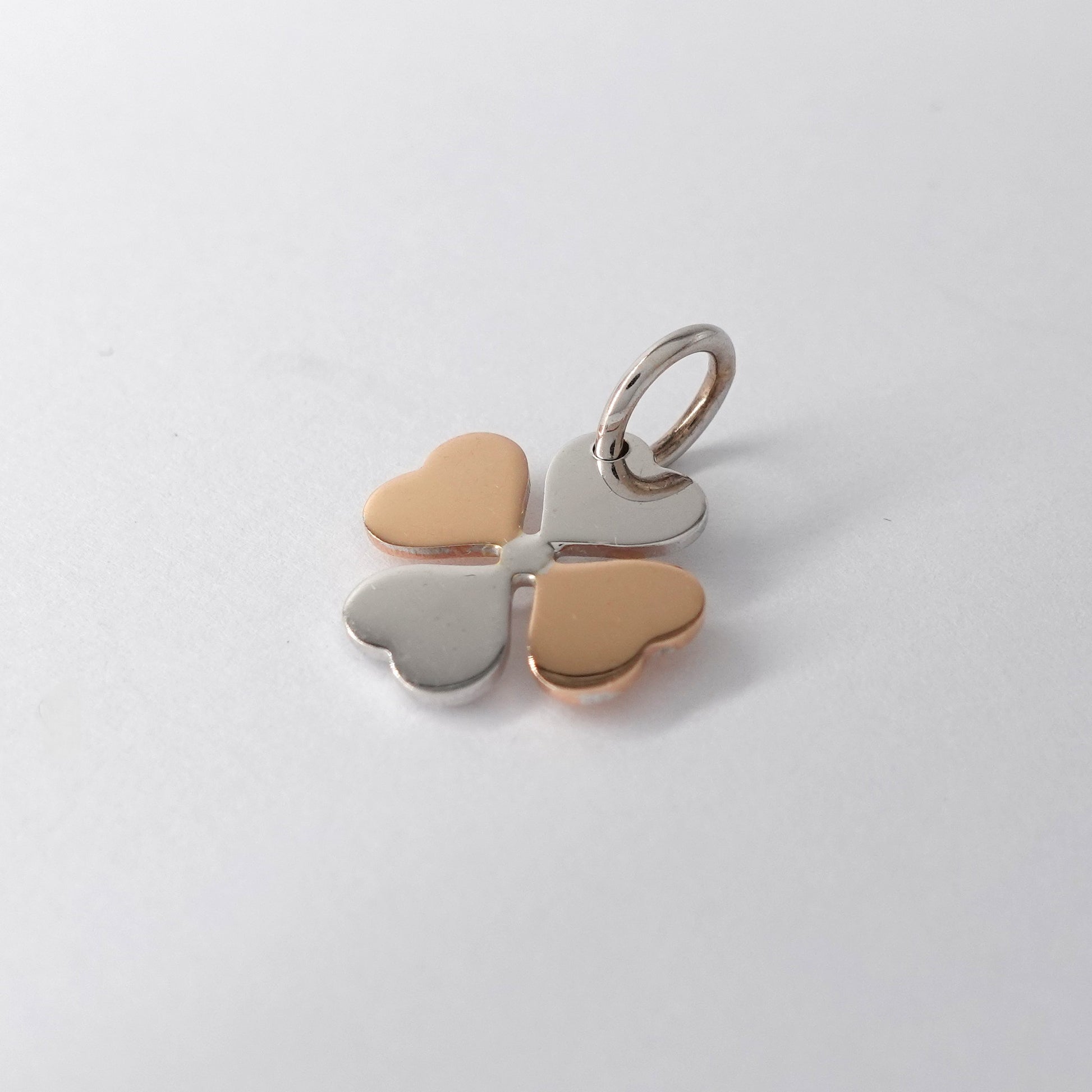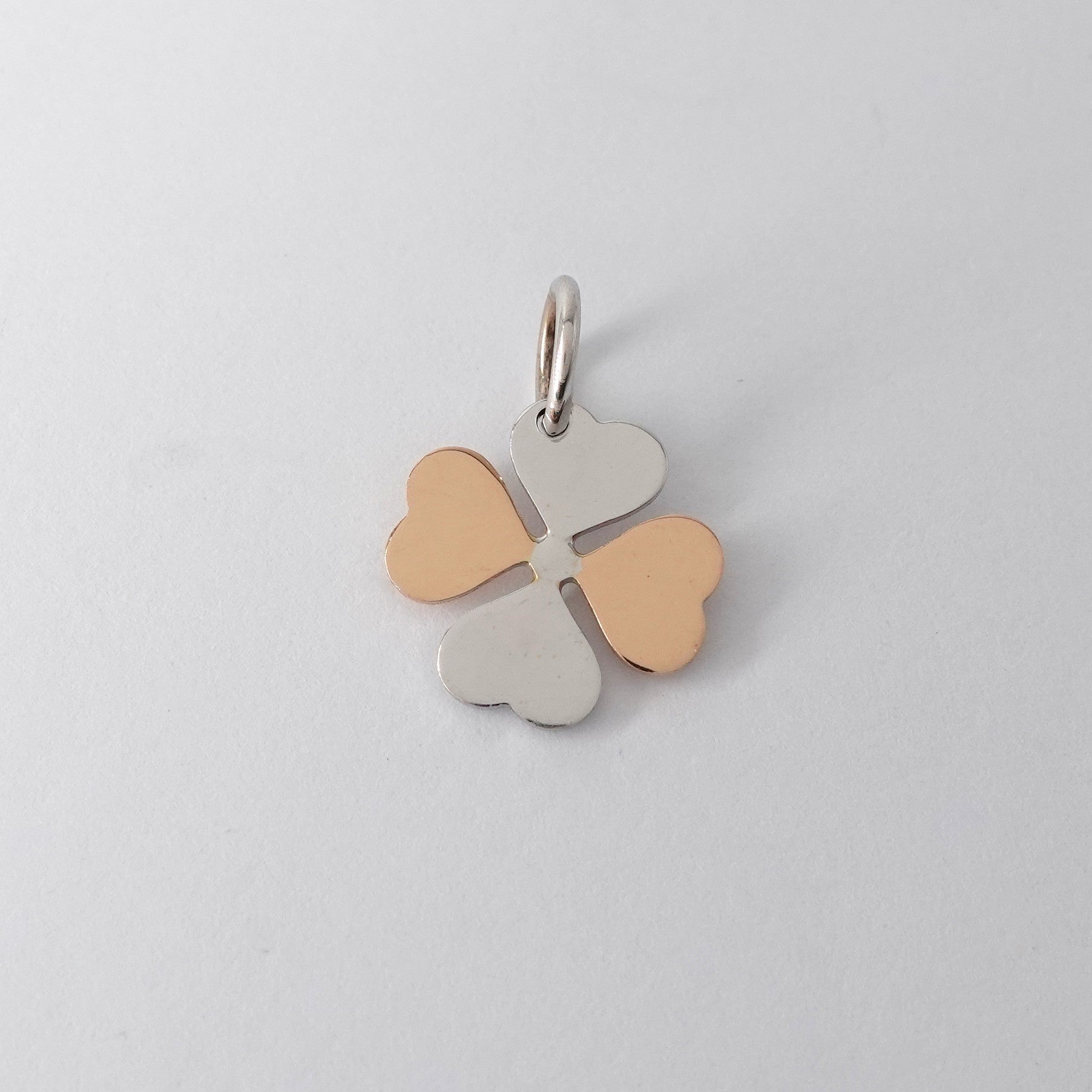 Ciondolo quadrifoglio in oro bianco e rosé 18kt