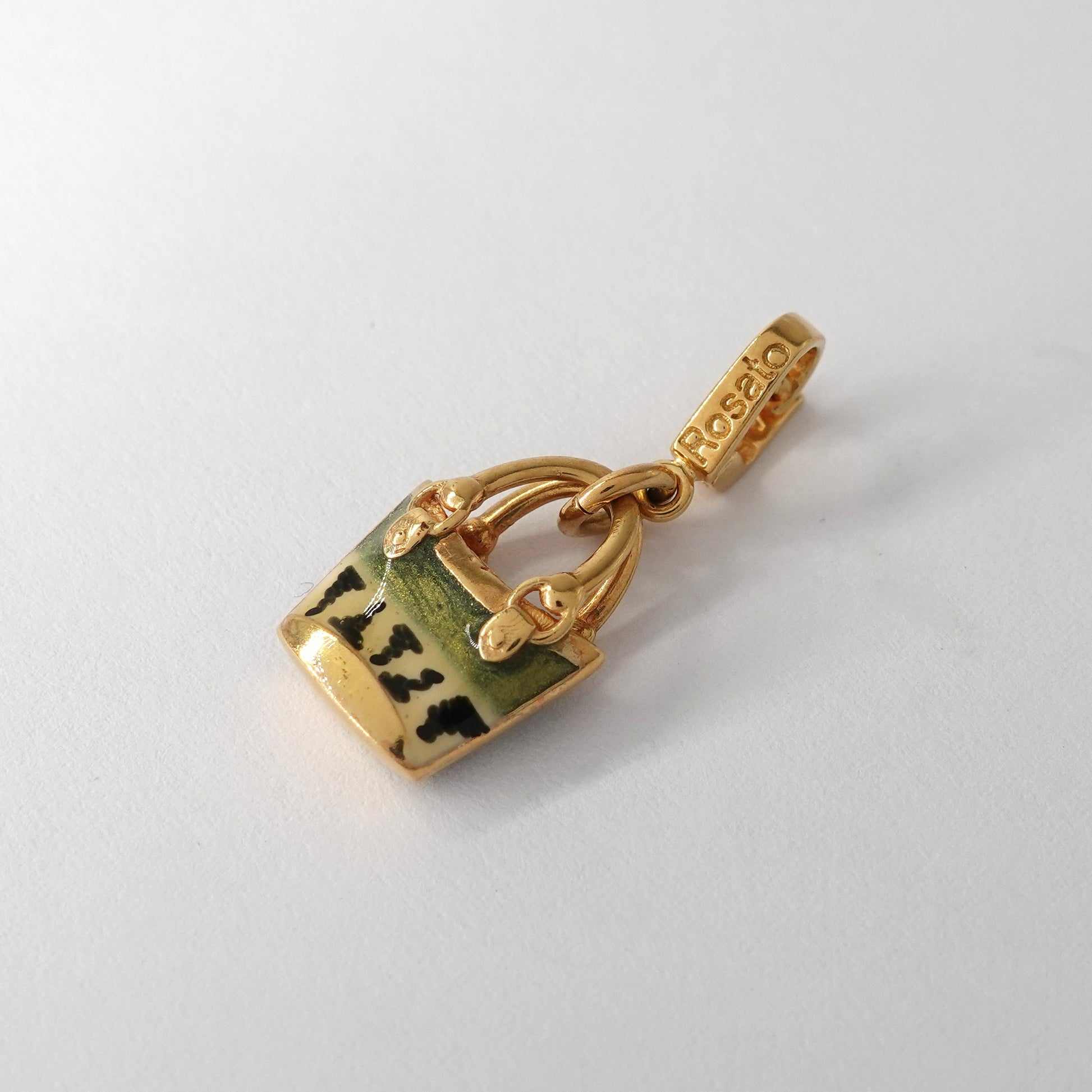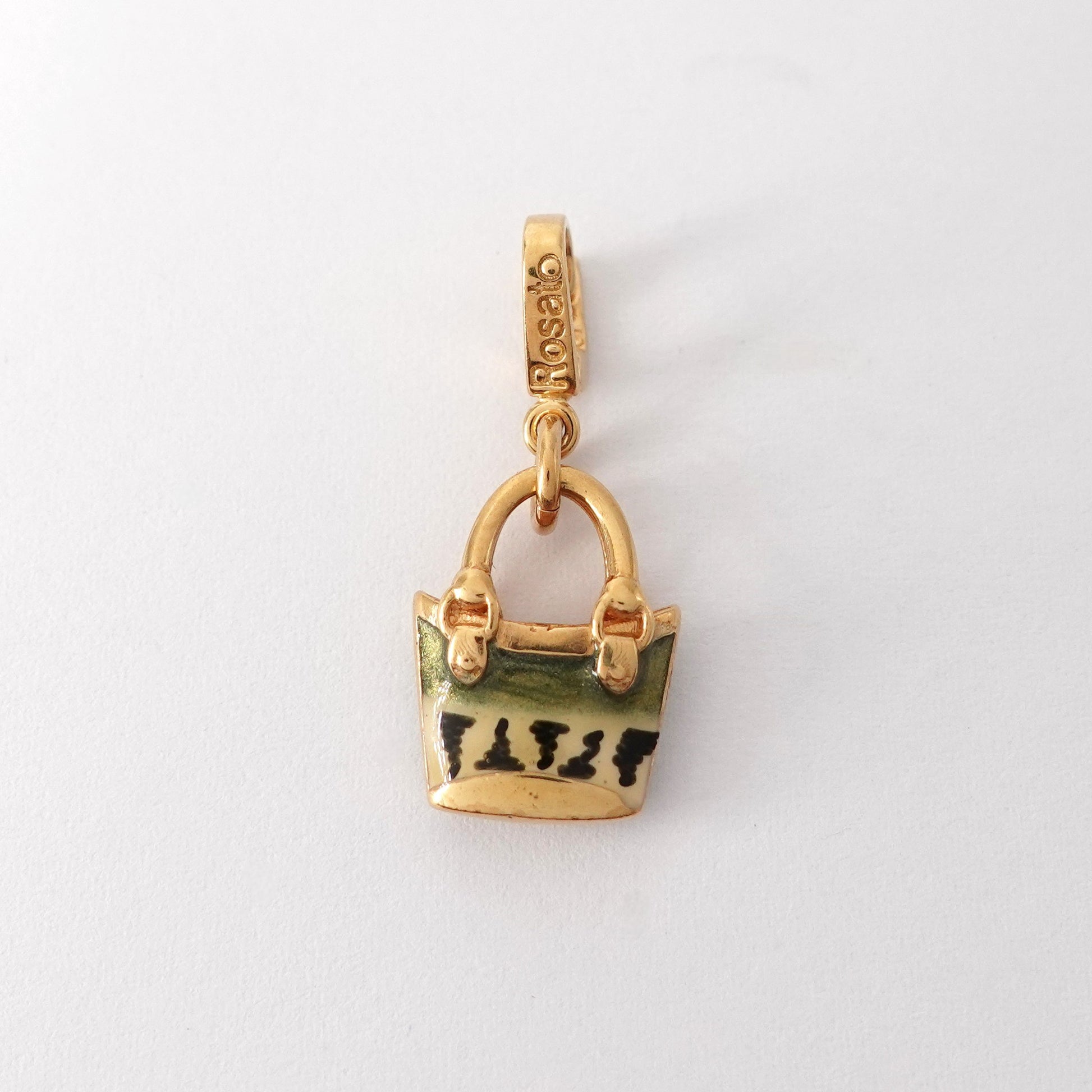 Ciondolo borsetta ROSATO zebrata in oro giallo 18kt con smalto verde