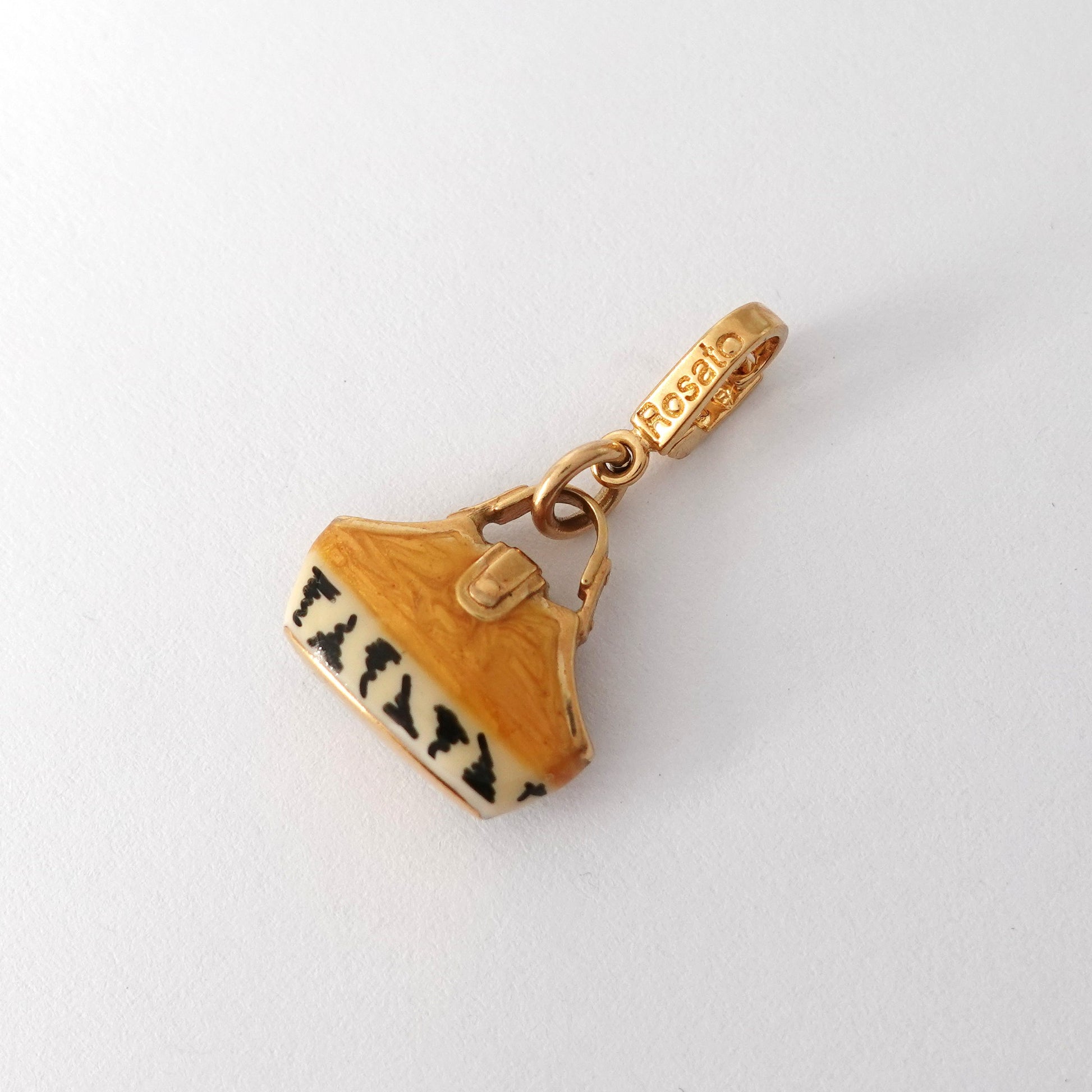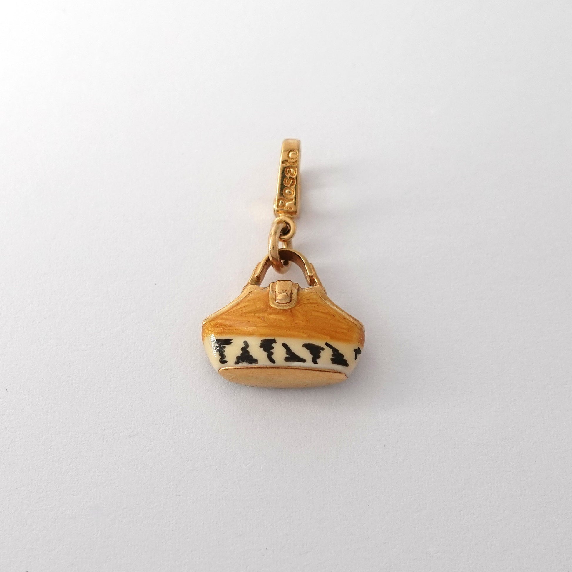 Ciondolo borsetta ROSATO zebrata in oro giallo 18kt con smalto arancio