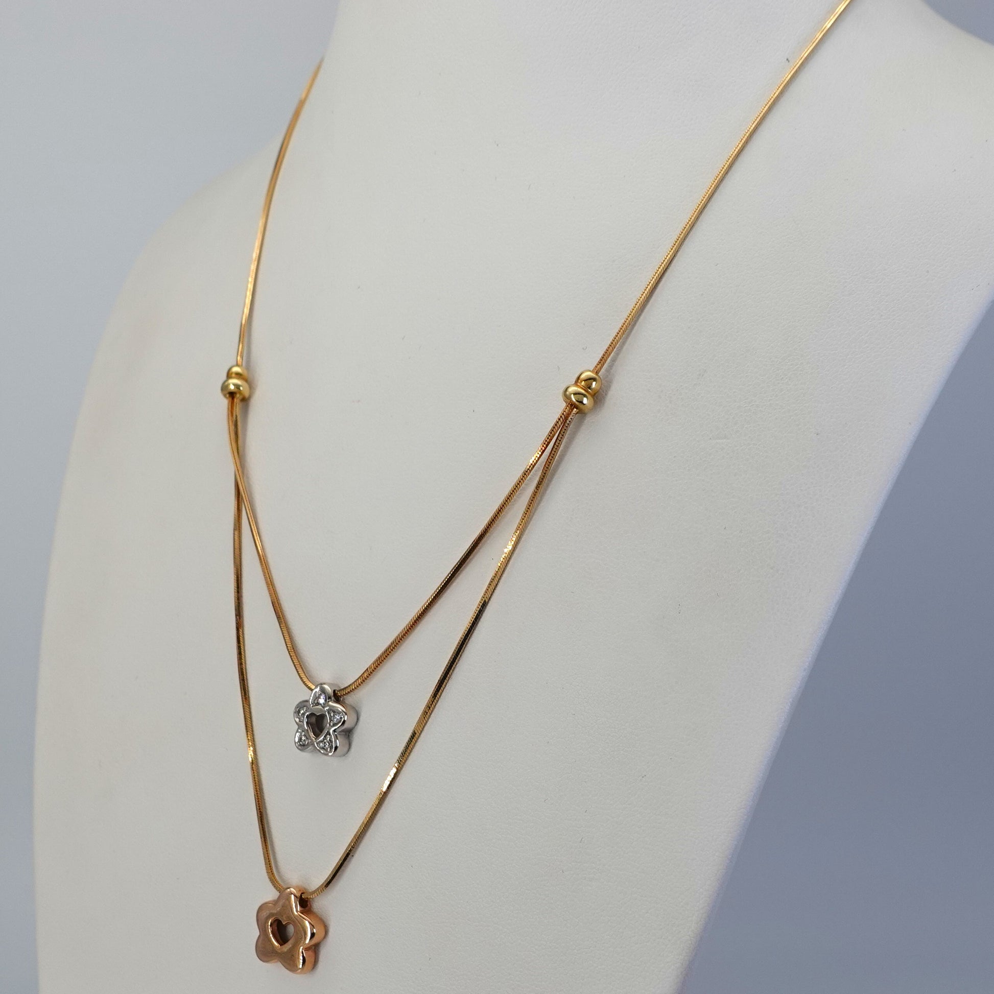 Collana nei tre colori dell'oro 18kt, con fiori