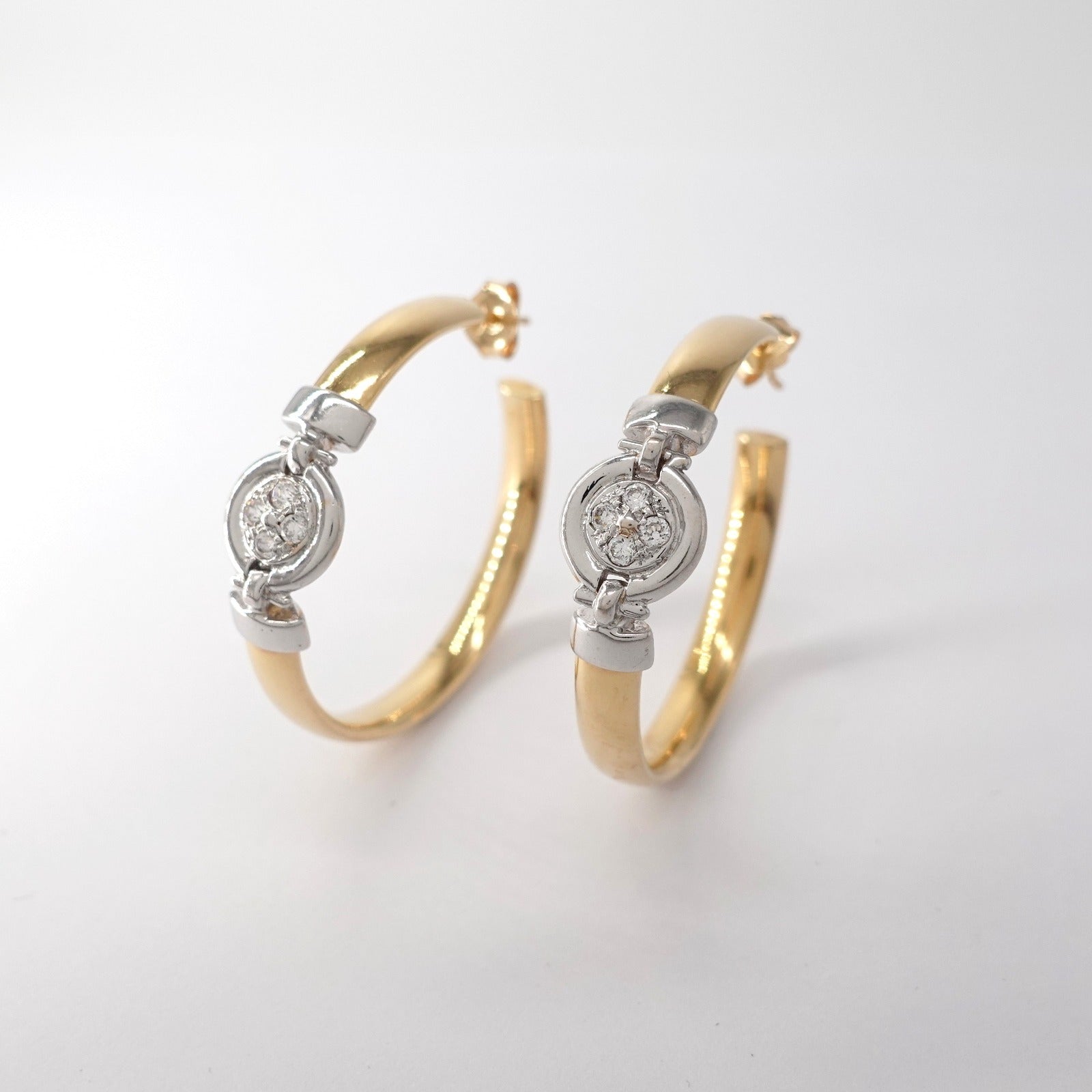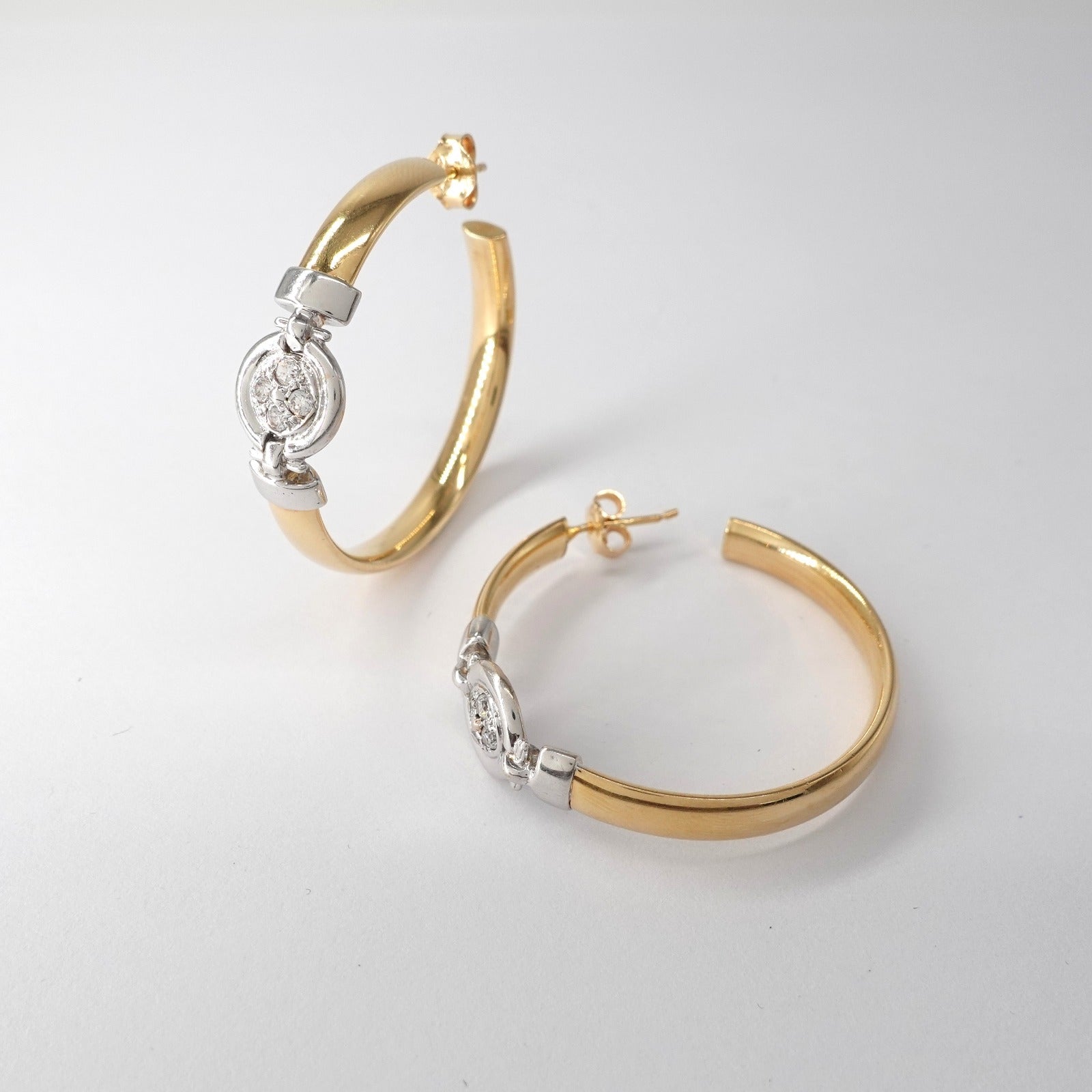 Orecchini a cerchio in oro giallo e bianco 18kt con zirconi