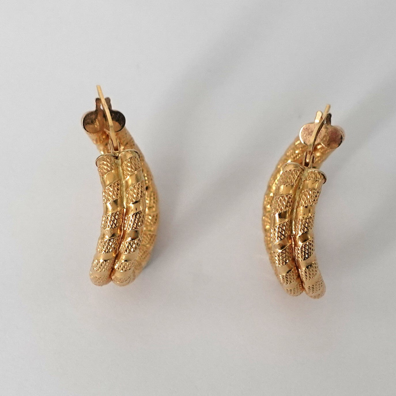 Orecchini a cerchio in oro giallo 18kt, lavorazione liscia a satinata, a onda.