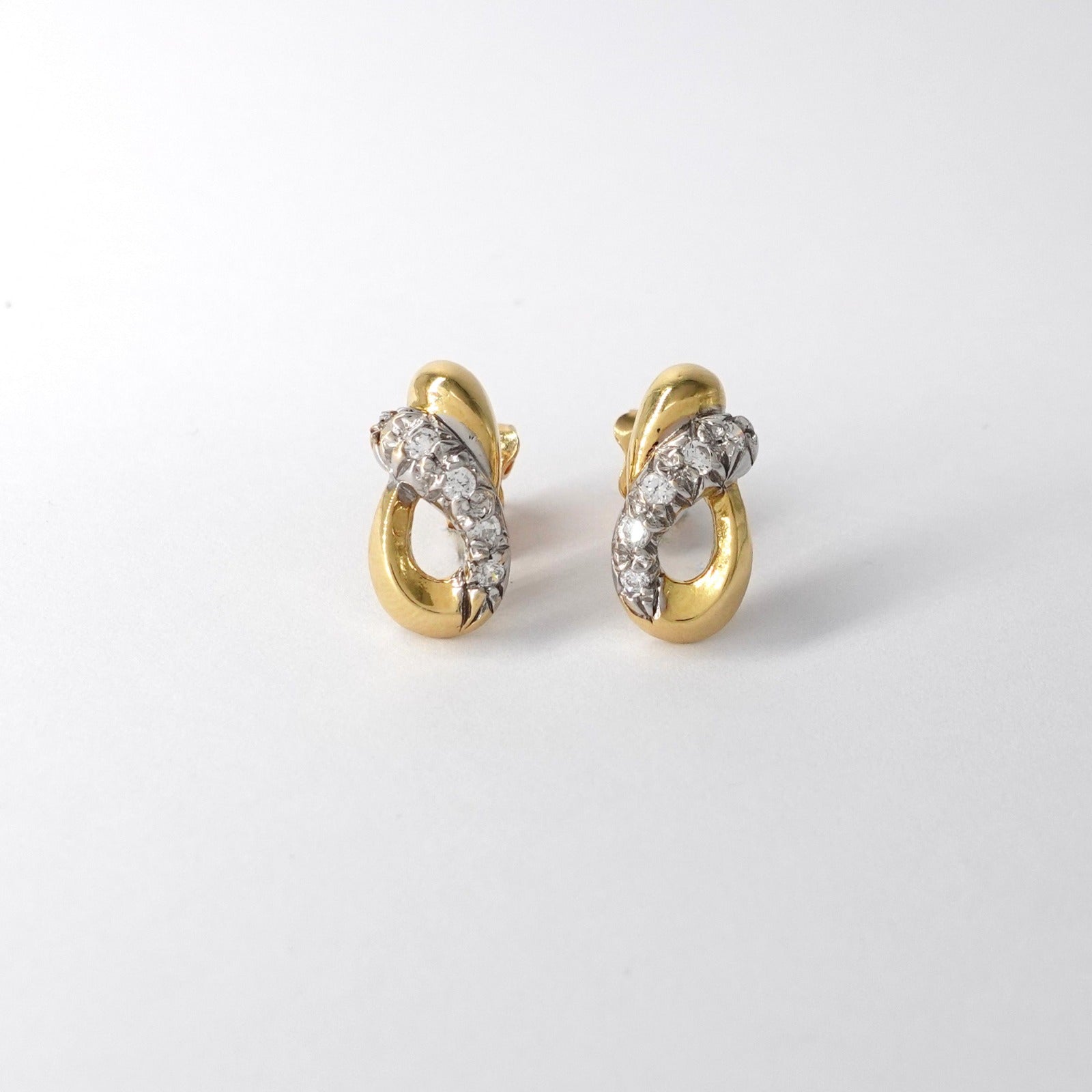 Orecchini a nodo in oro giallo e bianco 18kt con zirconi