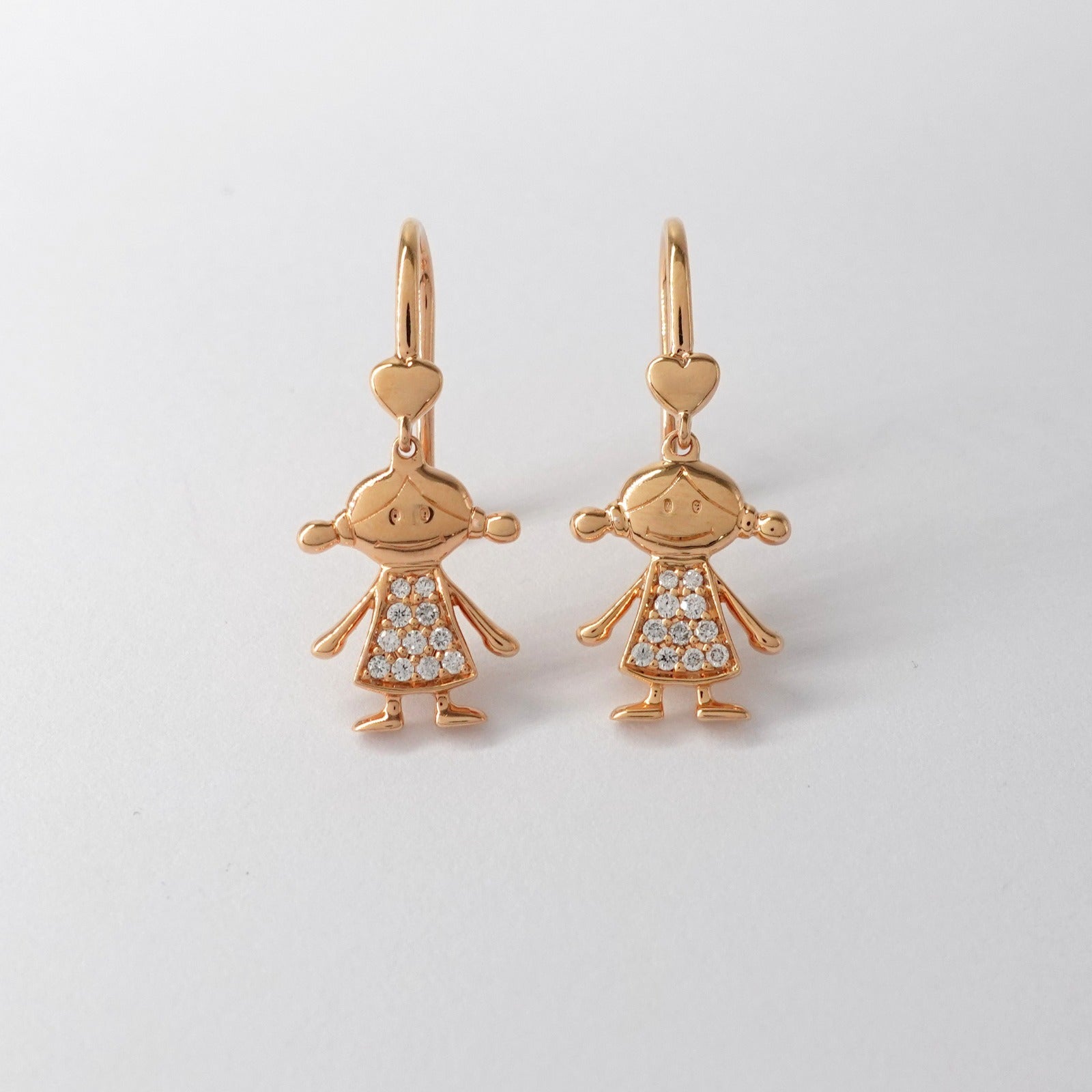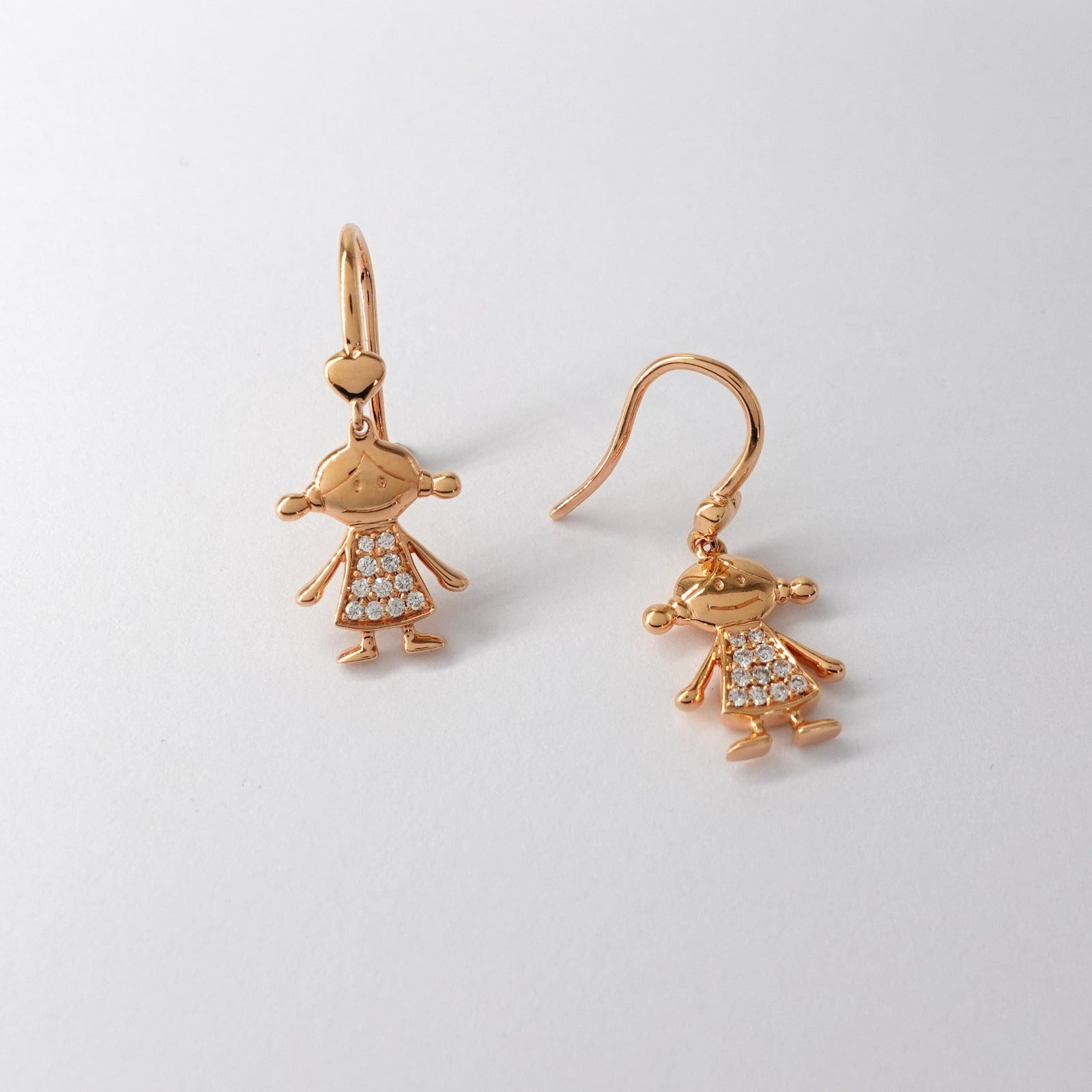 Orecchini bimba pendenti in oro rosè 18kt con diamanti taglio brillante