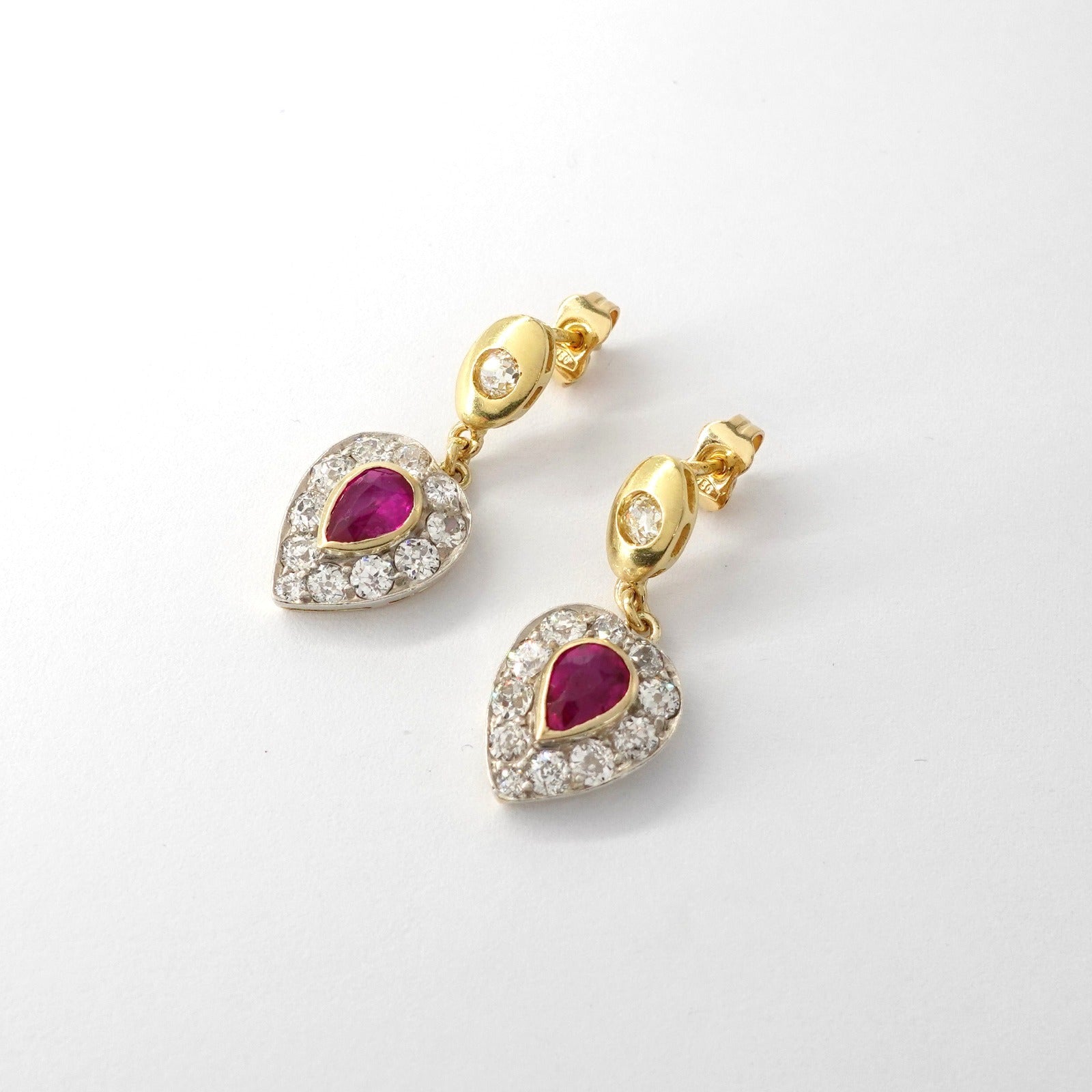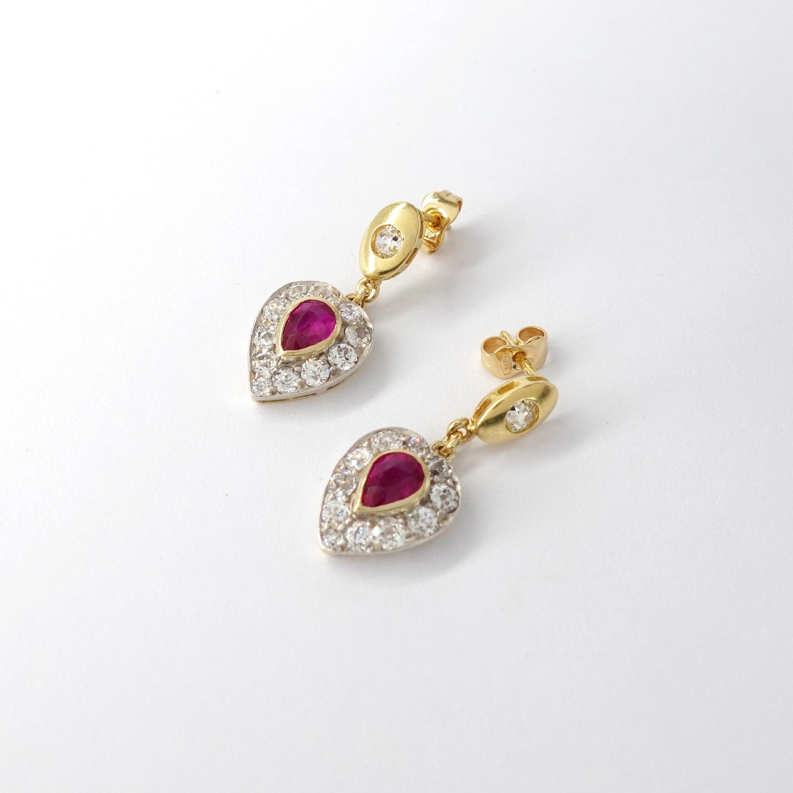 Orecchini cuore in oro giallo e bianco 18kt con rubini e diamanti taglio brillante Peso: 5,10gr Misura: 2,5cm Cod.2298G