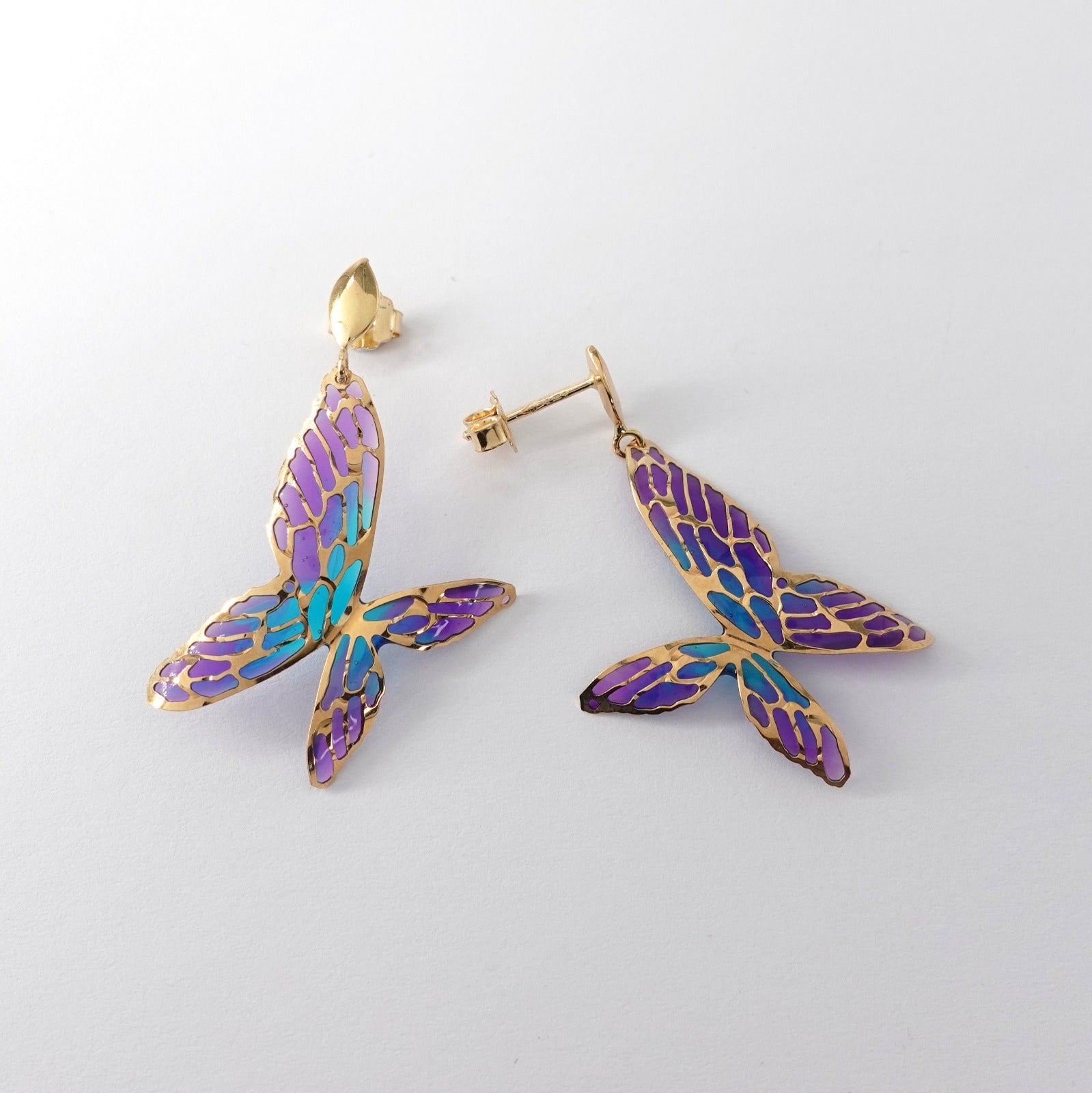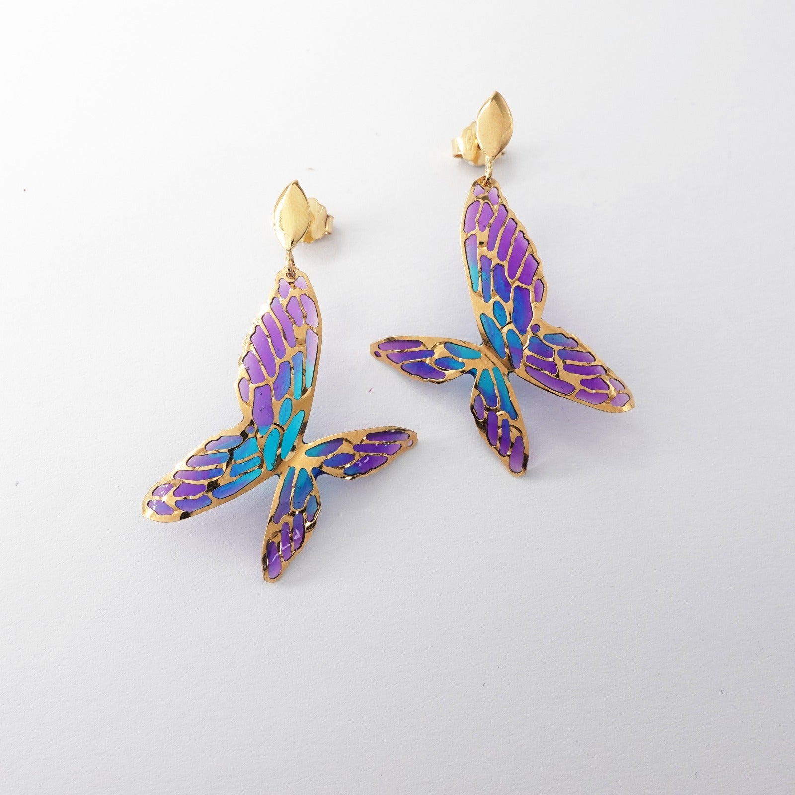 Orecchini farfalle in oro giallo 18kt con smalti colorati