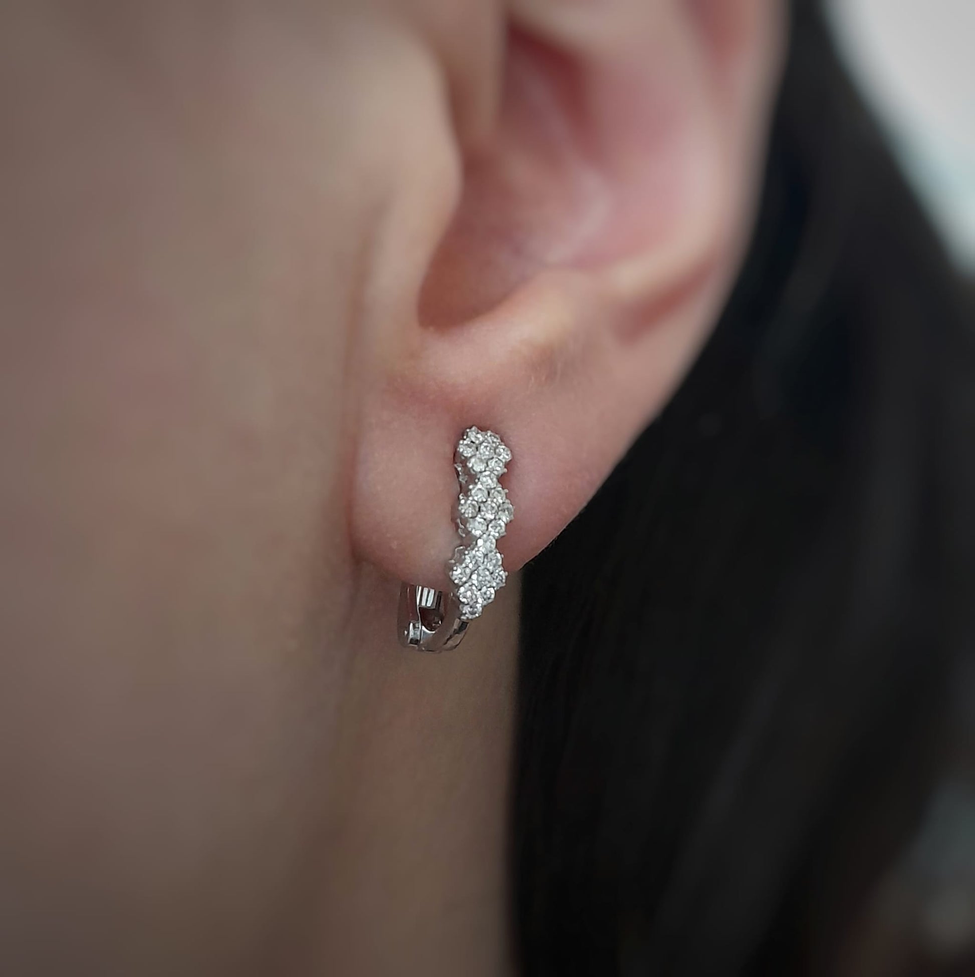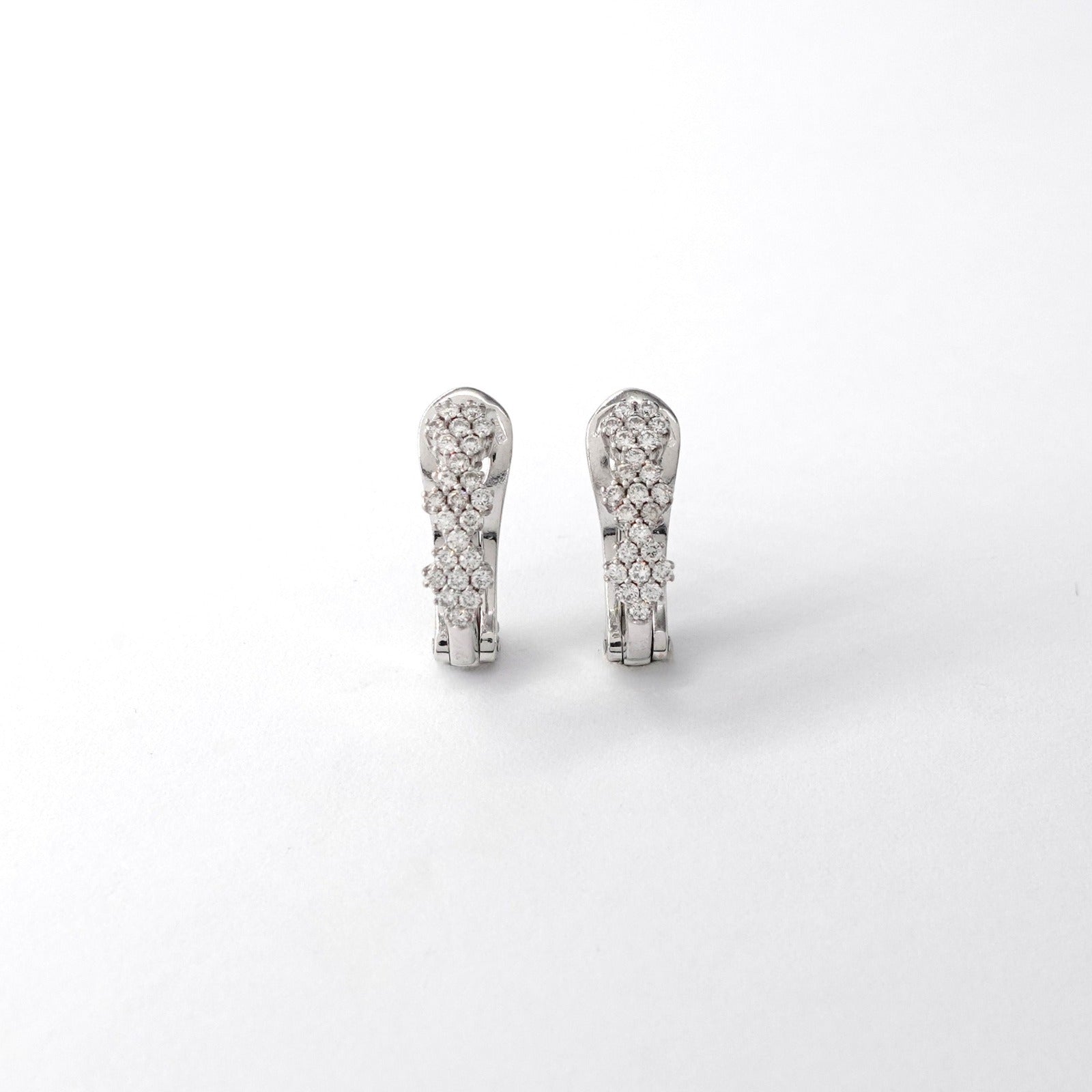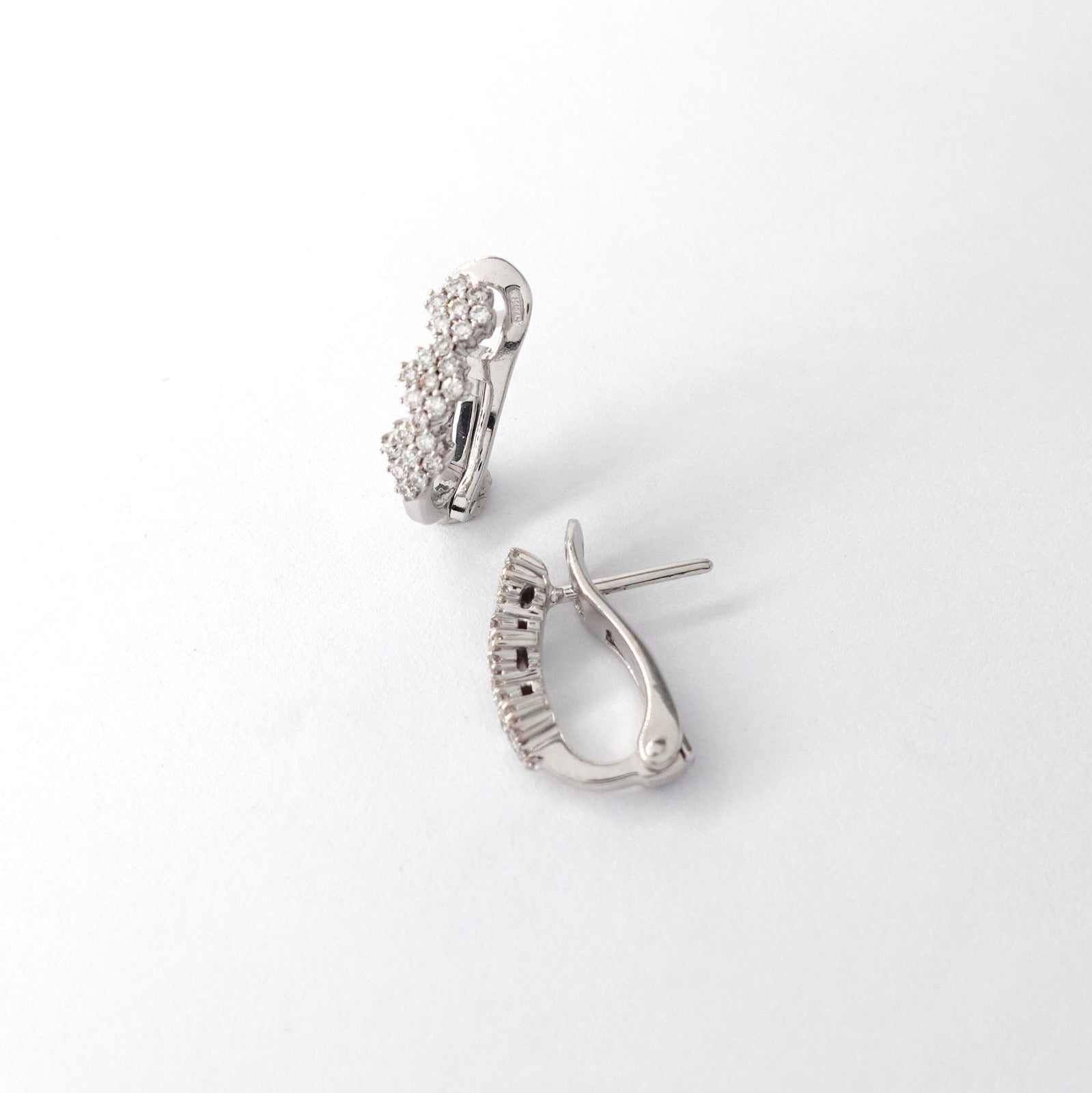 Orecchini illusion in oro bianco 18kt con diamanti taglio brillante Peso: 3,47gr Misura:1cm Cod.2297G