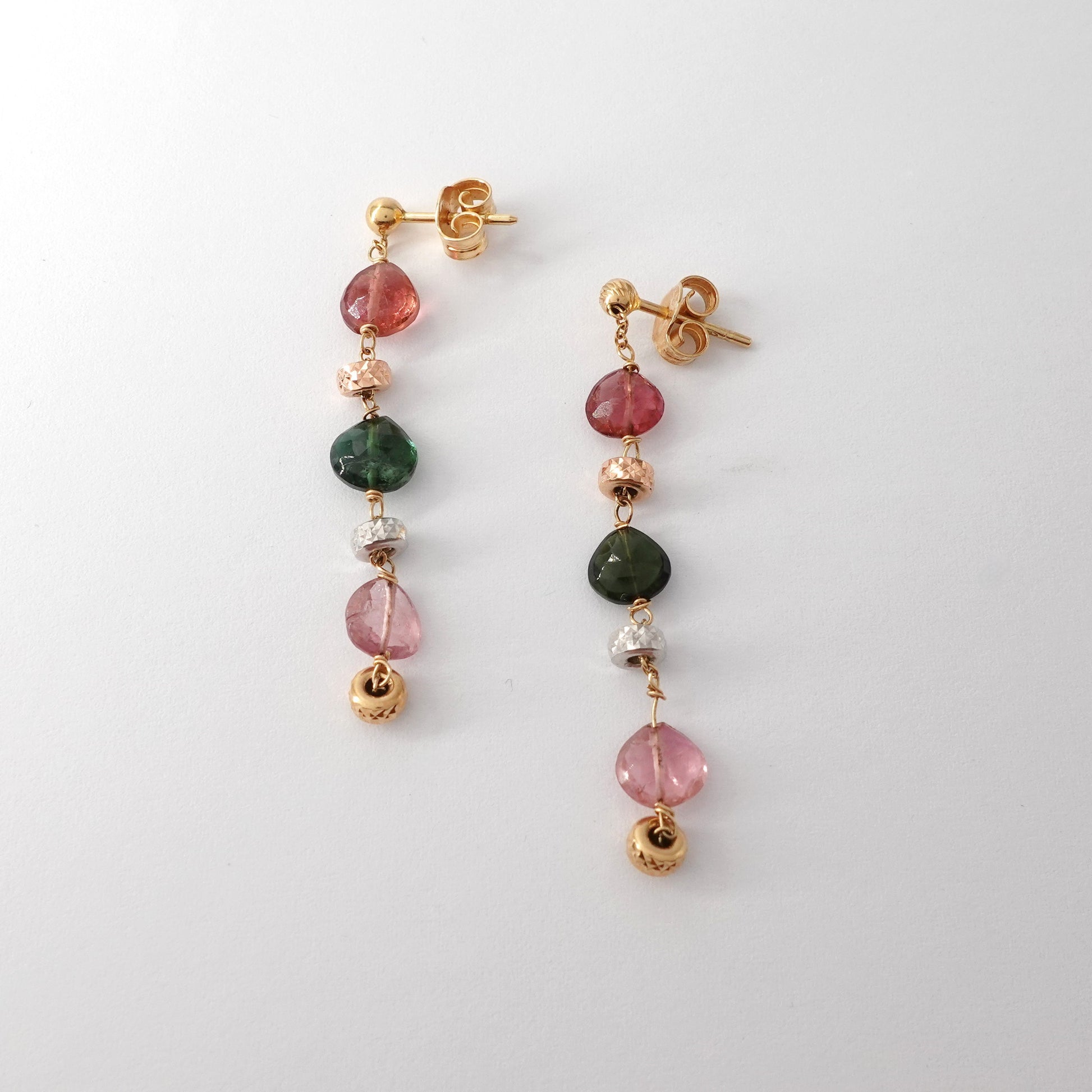 Orecchini pendenti in oro giallo e bianco 18kt con tormaline