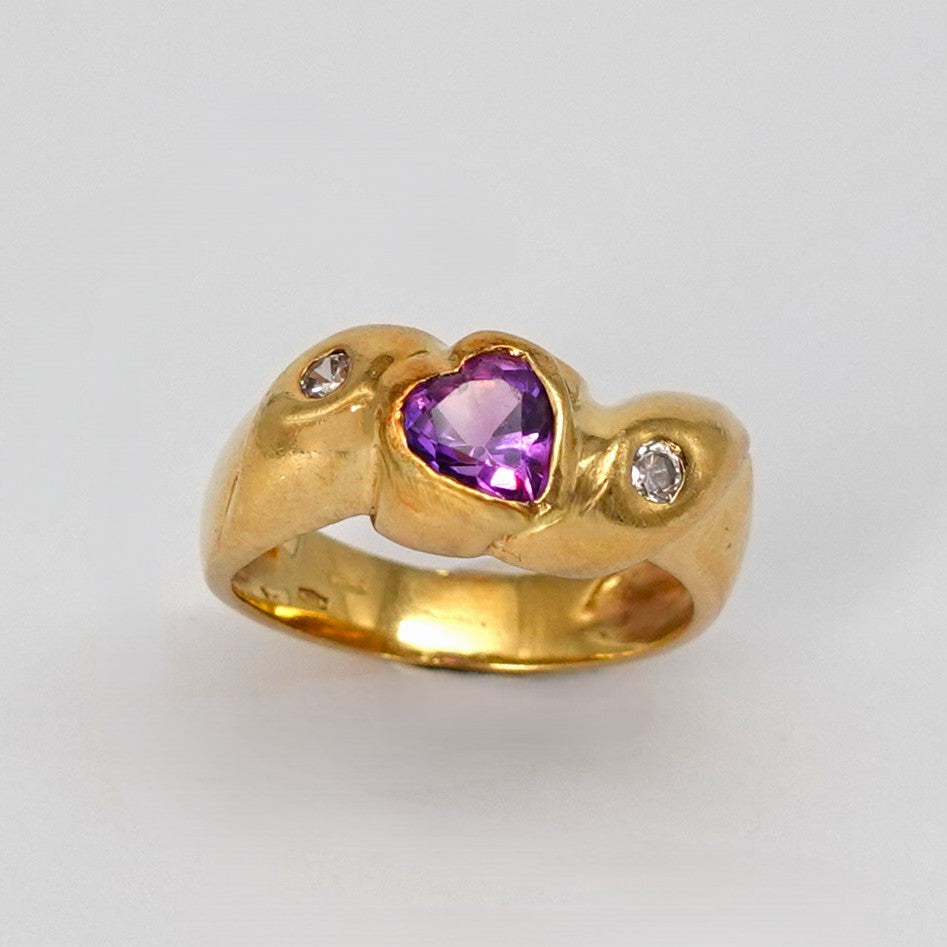 Anello e orecchini in oro giallo 18kt, con zirconi colorati a forma di cuore