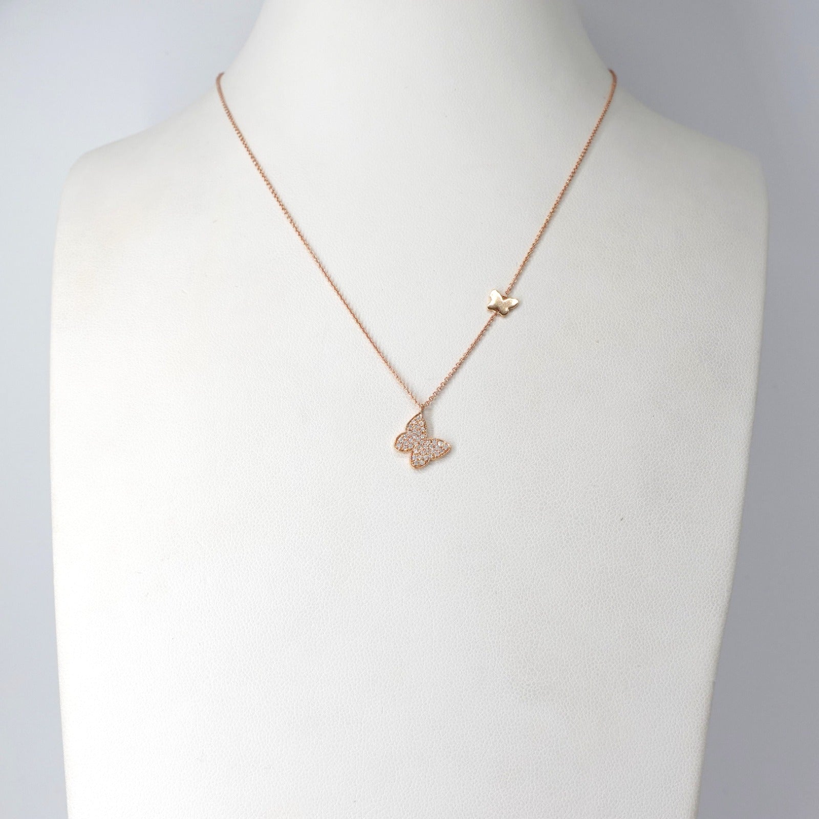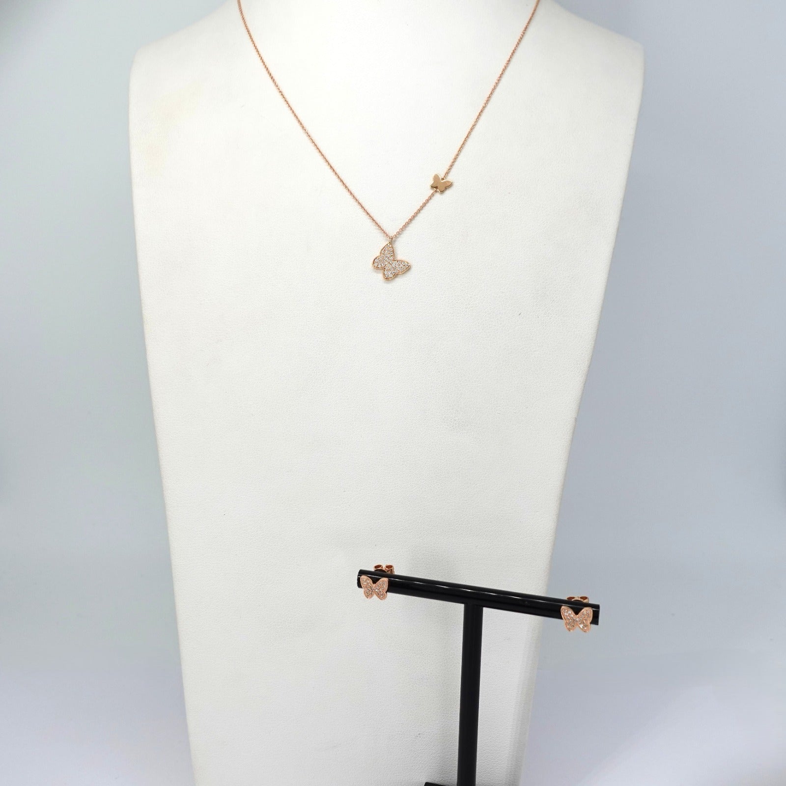 Parure farfalle catenina e orecchini in oro rosè 18kt con brillantini